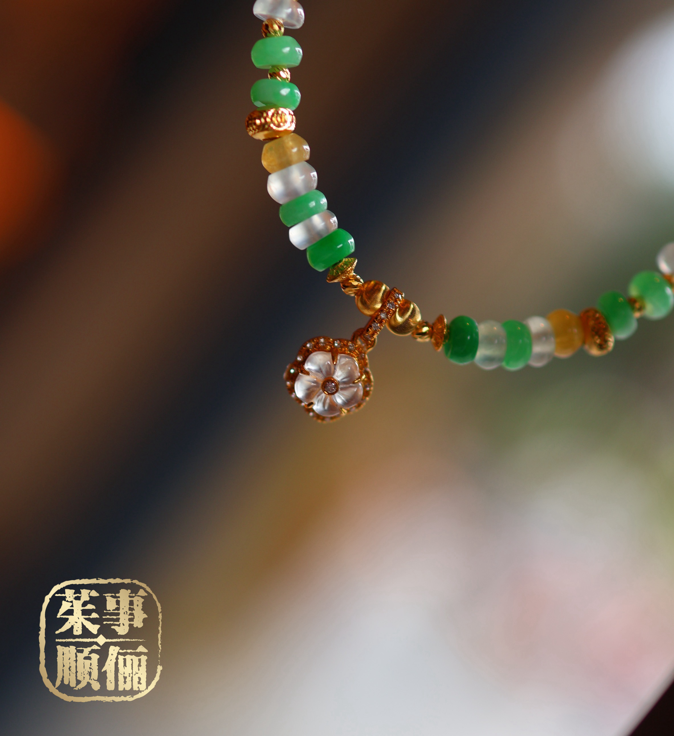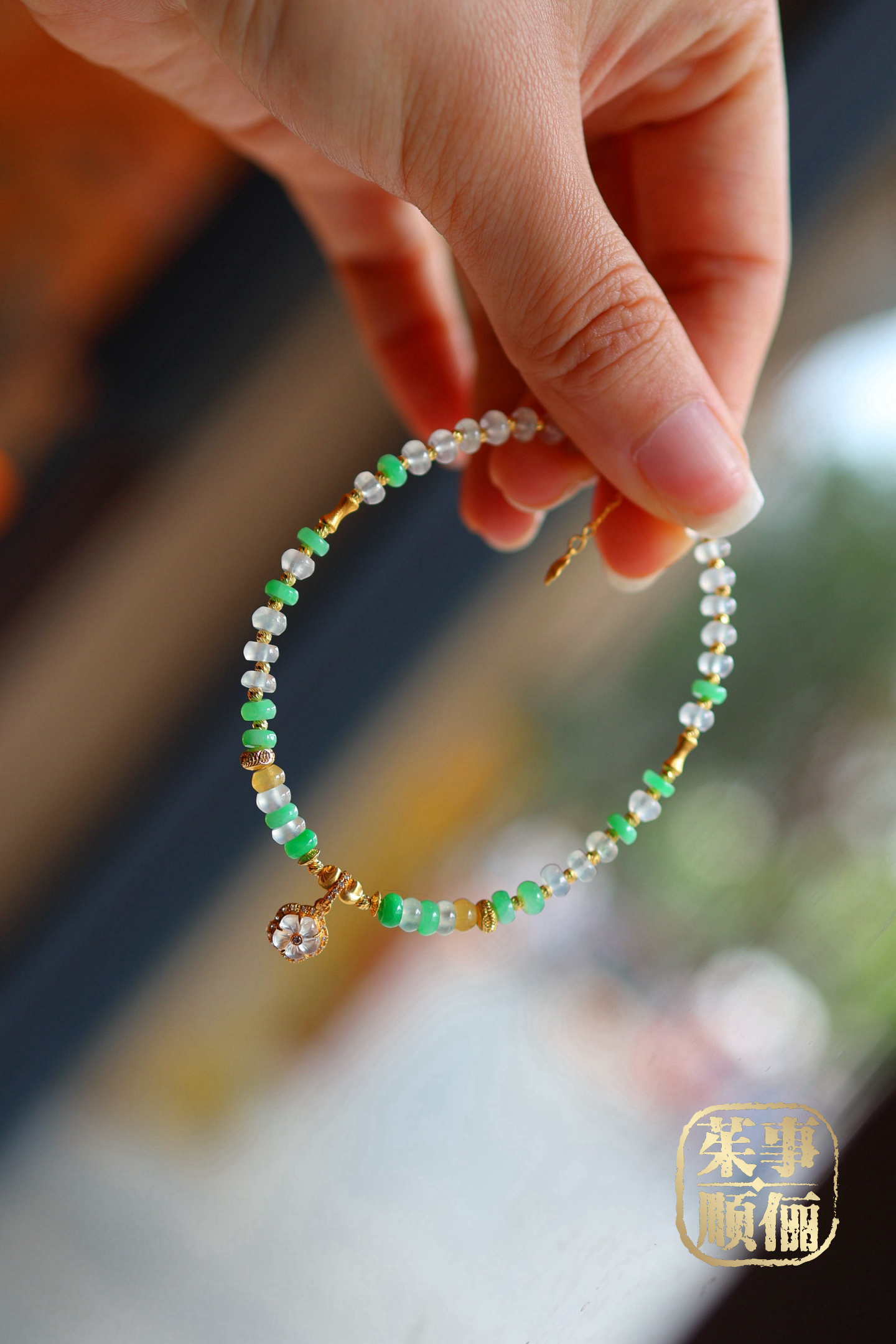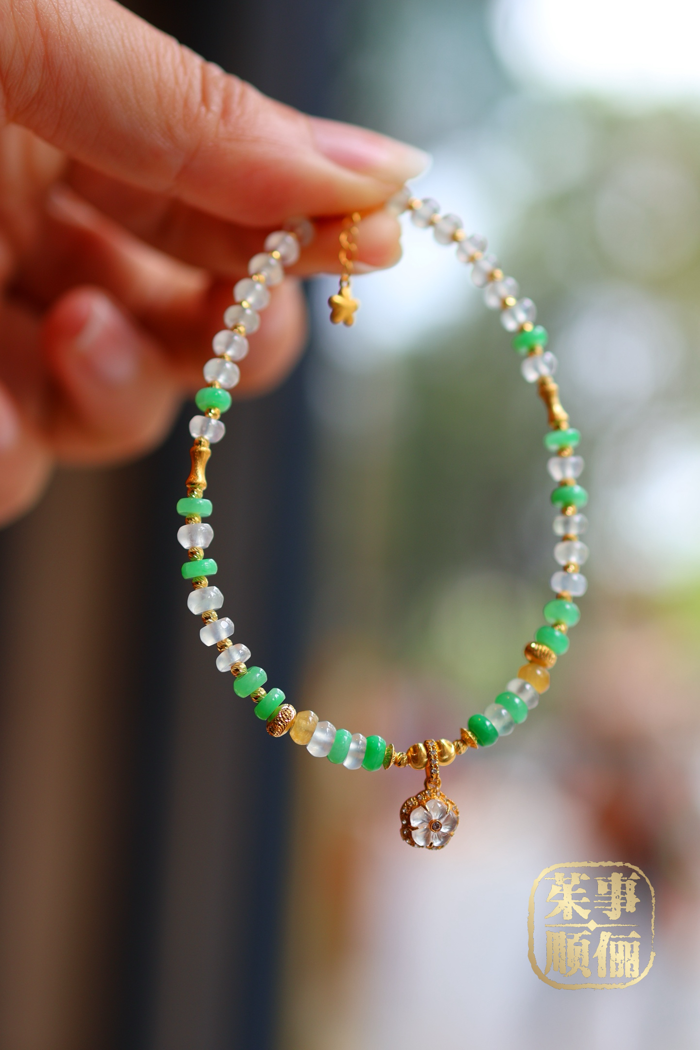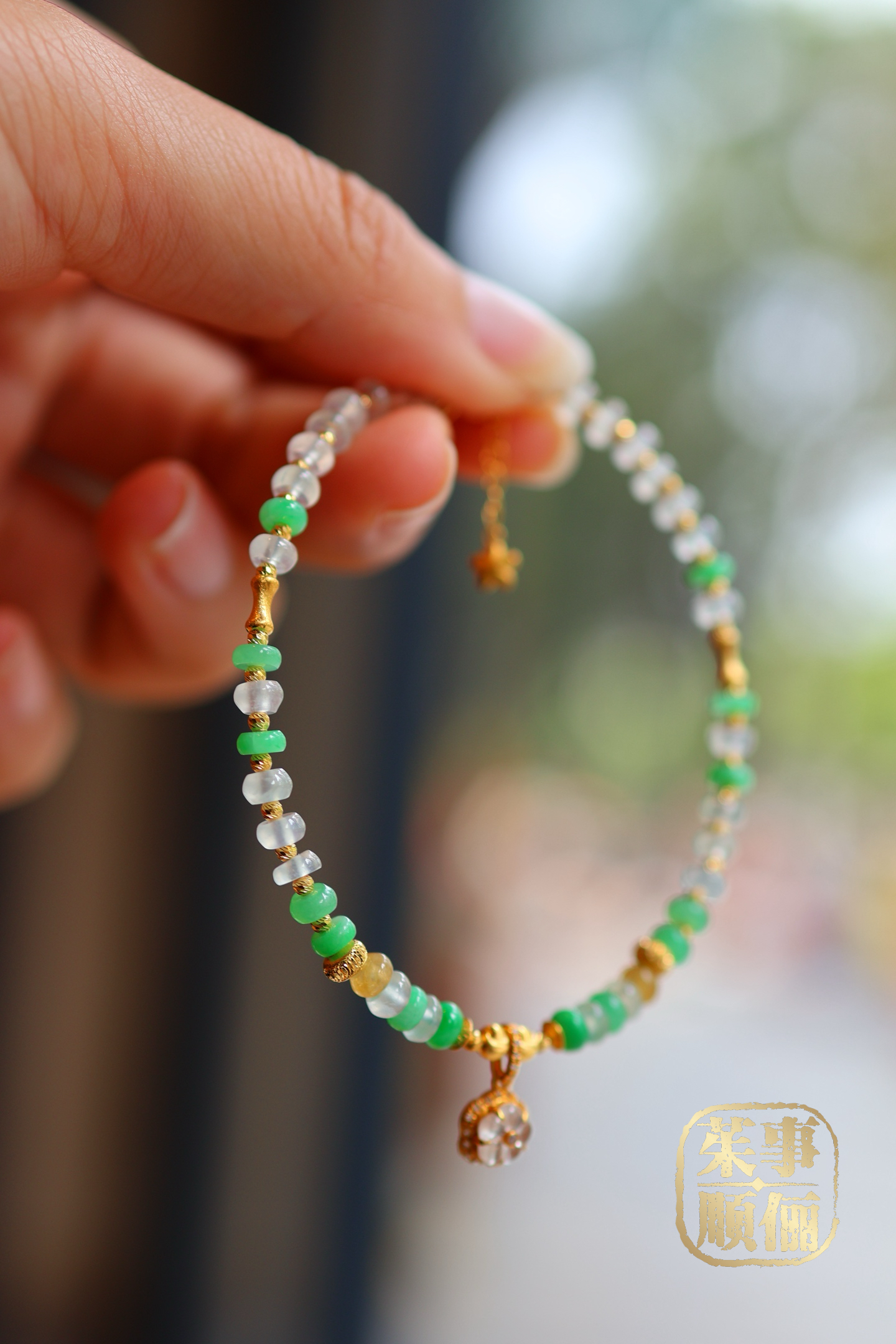 【26年女神樱花季】18k金A货缅料高冰翡翠盘珠钻石手链