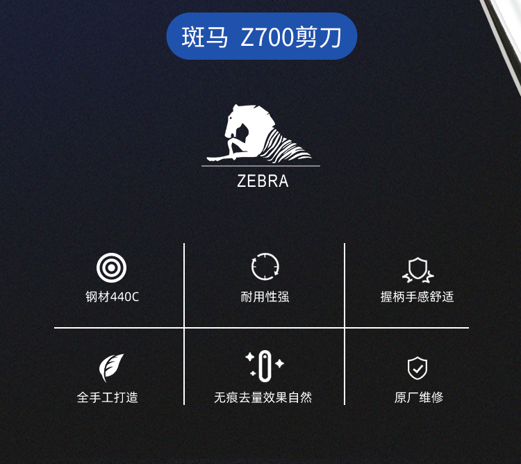 ZEBRA斑马 剪刀 Z700 锋利/修饰剪/ 大切口/单侧柄/平剪/7寸