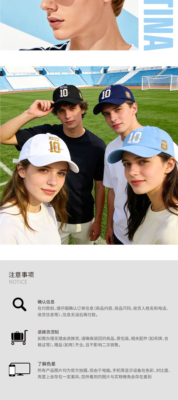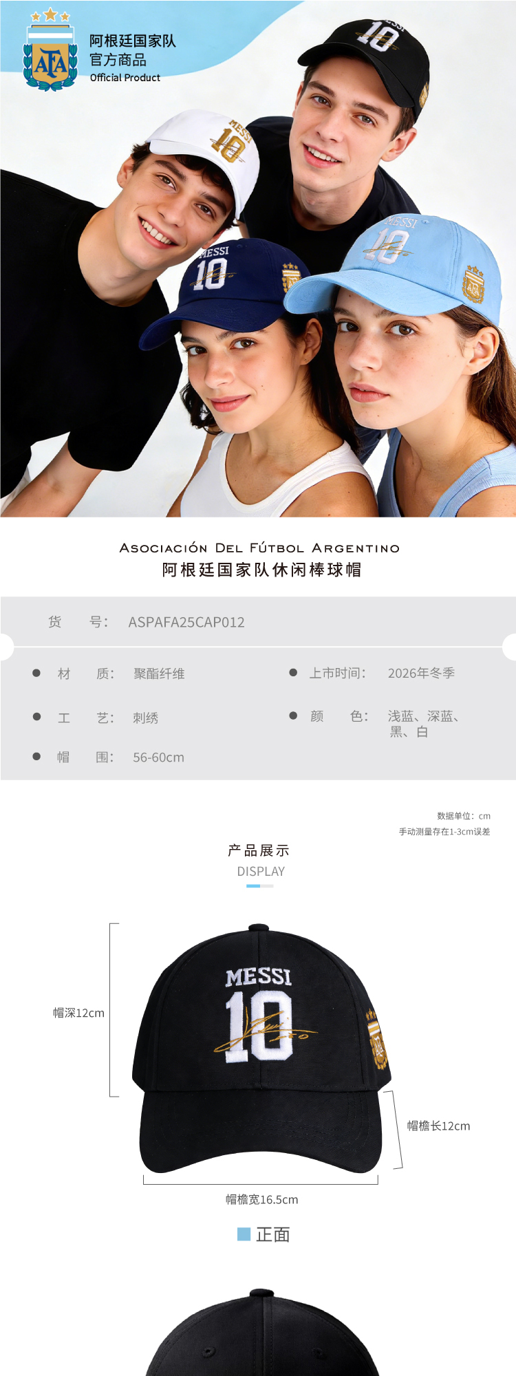 【官方正版】阿根廷国家队 | 休闲棒球帽春秋款梅西球迷周边