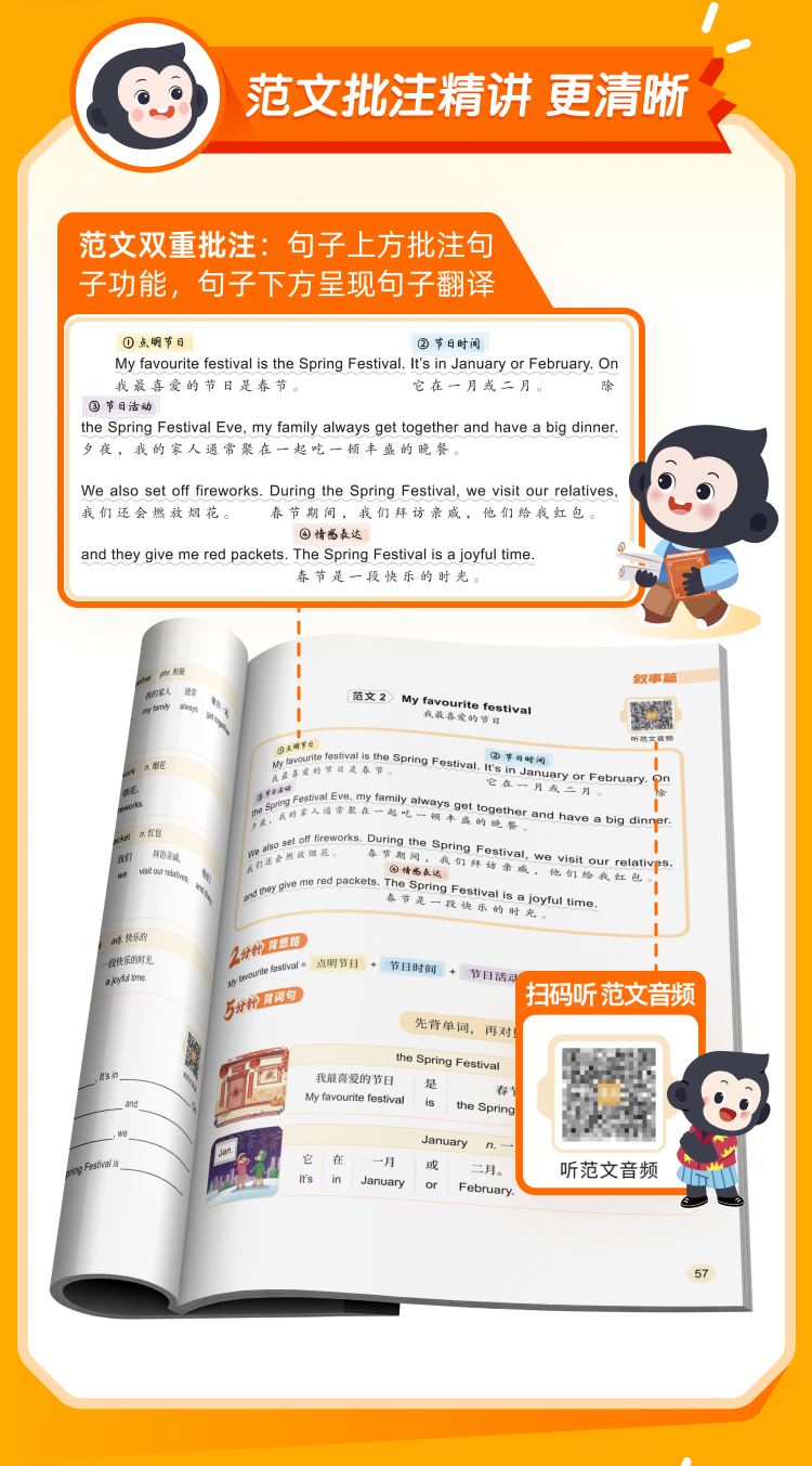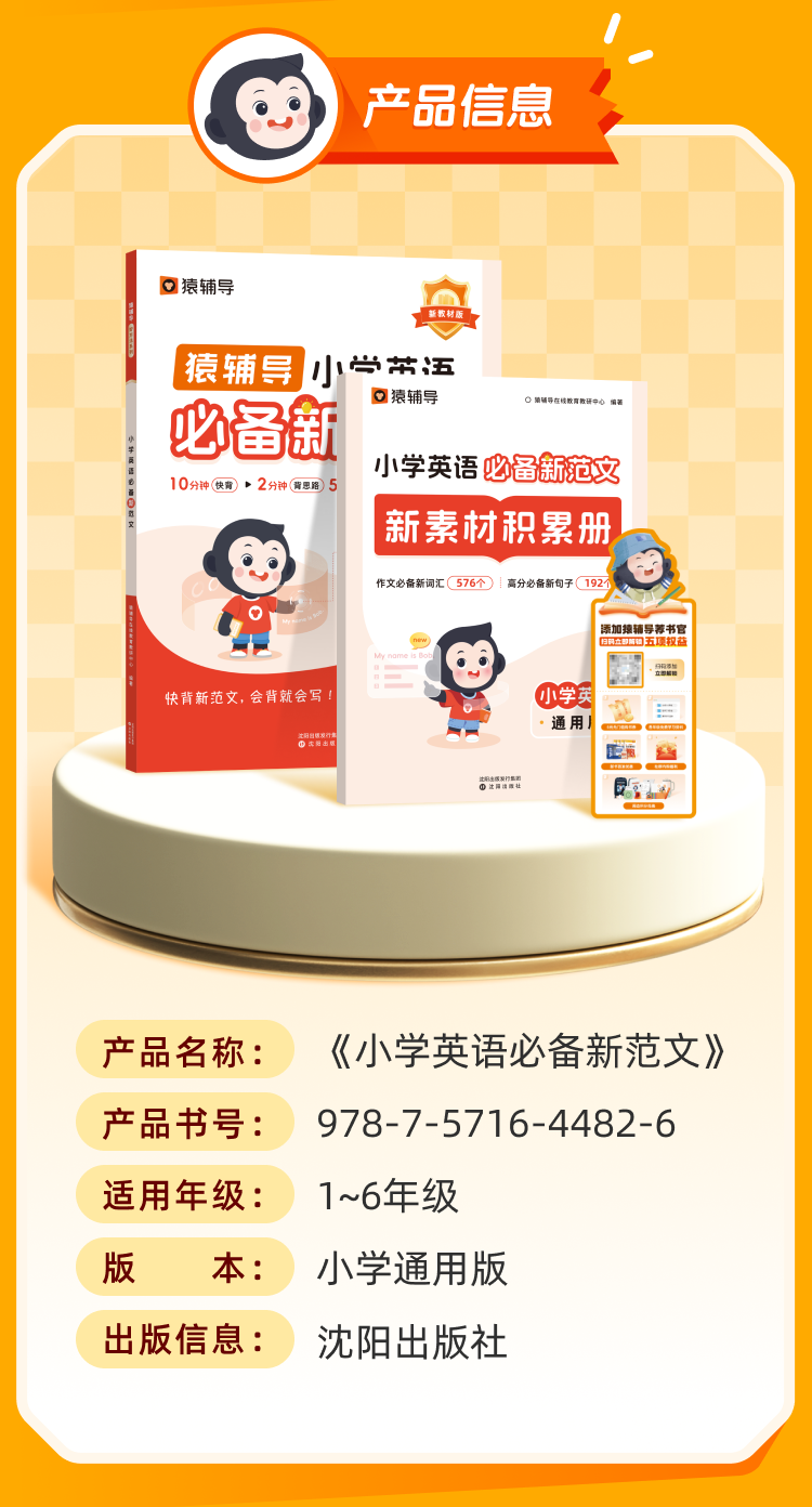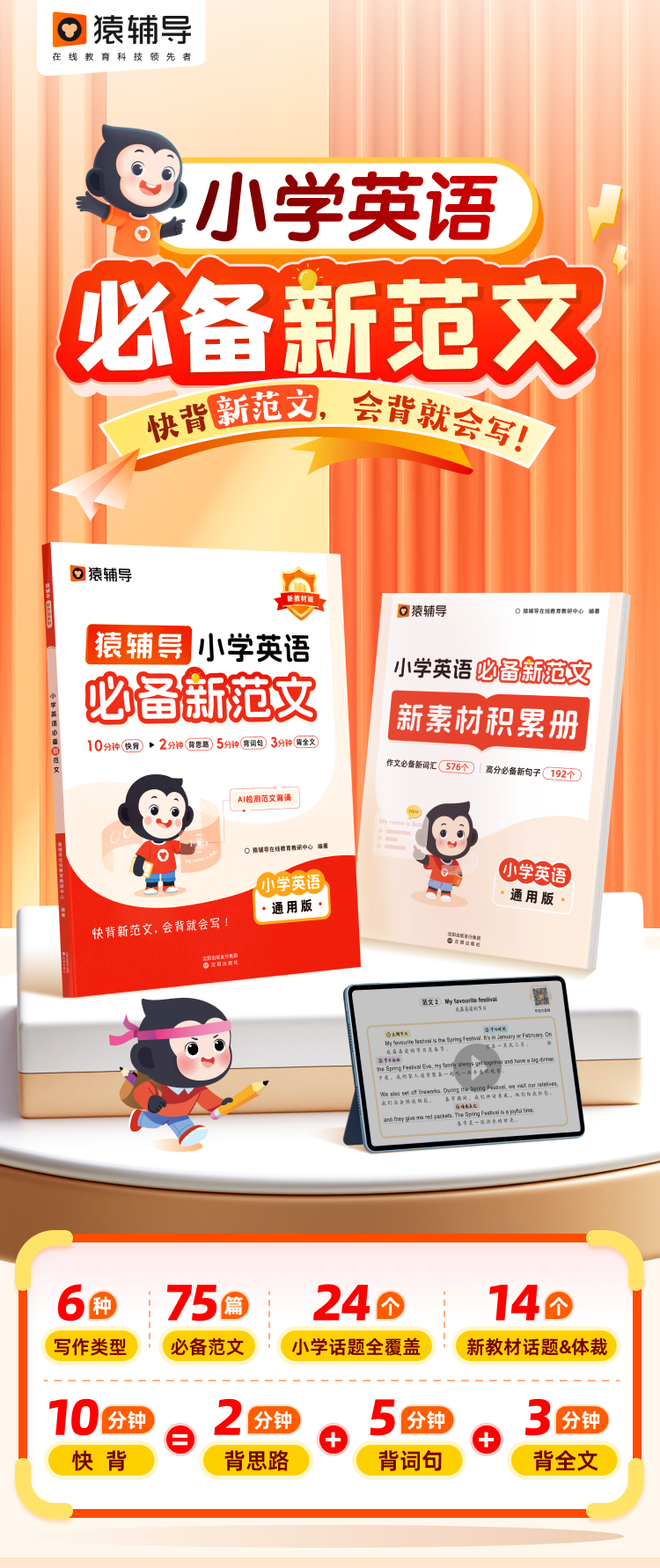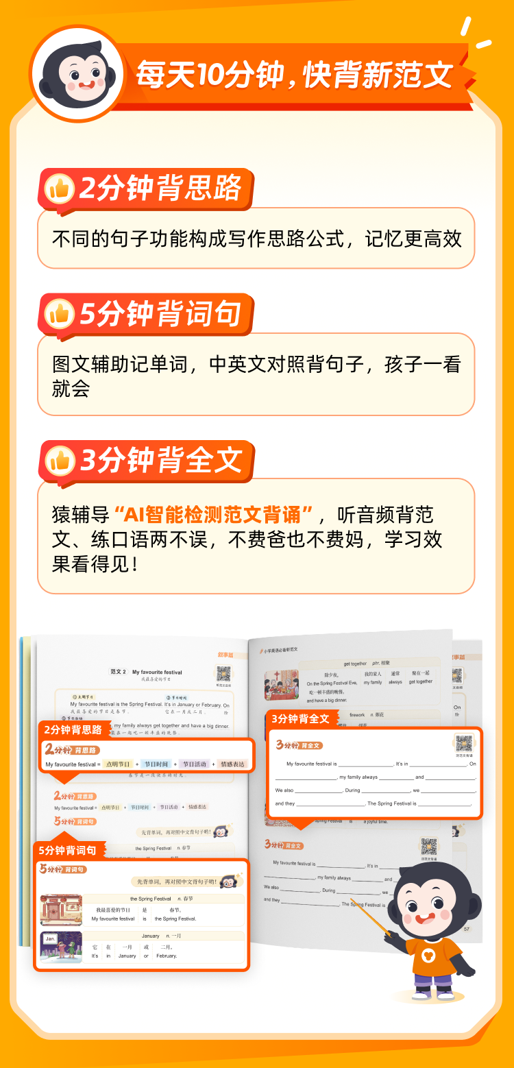 猿辅导《小学英语必备新范文 》-10分钟快背新范文,会背就会写