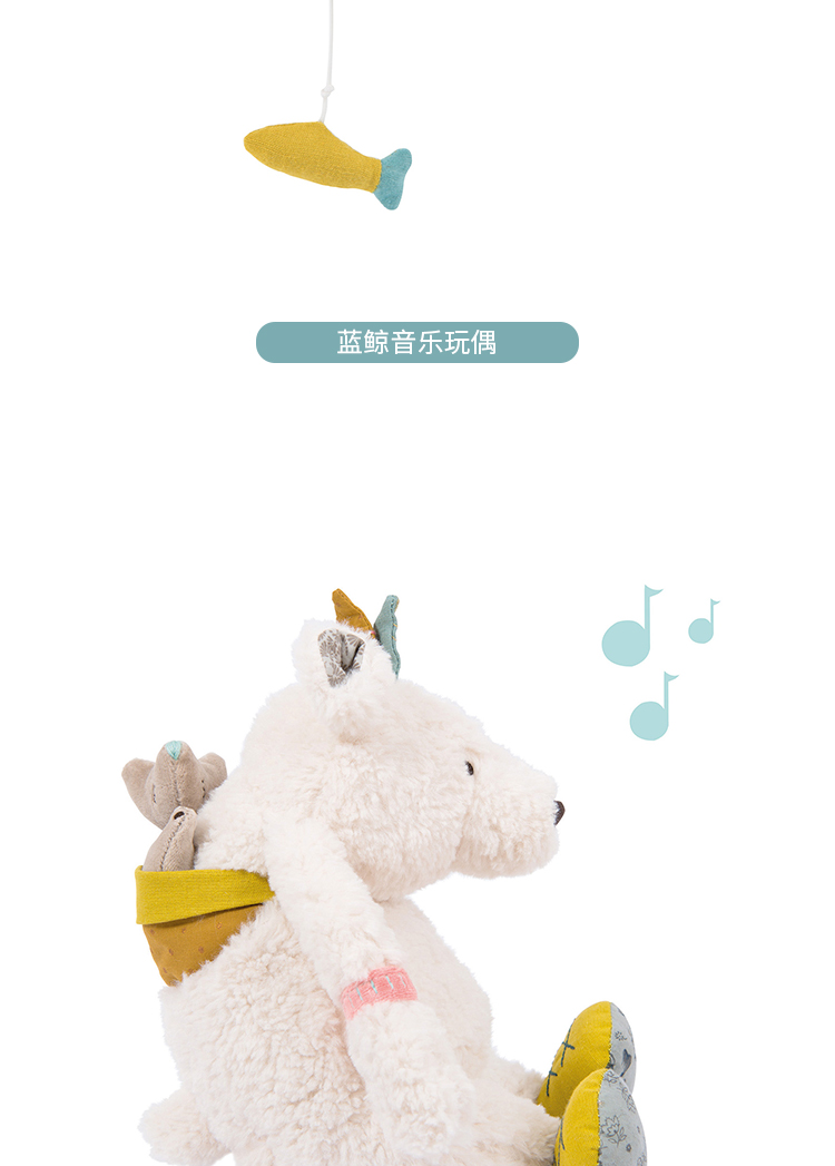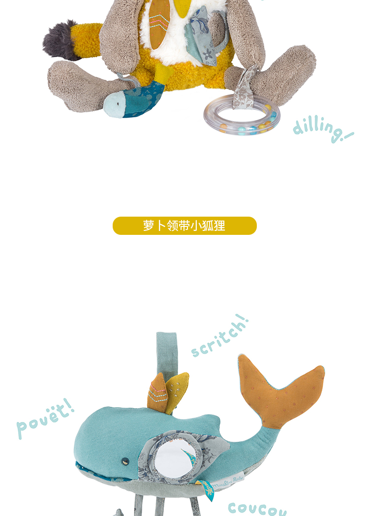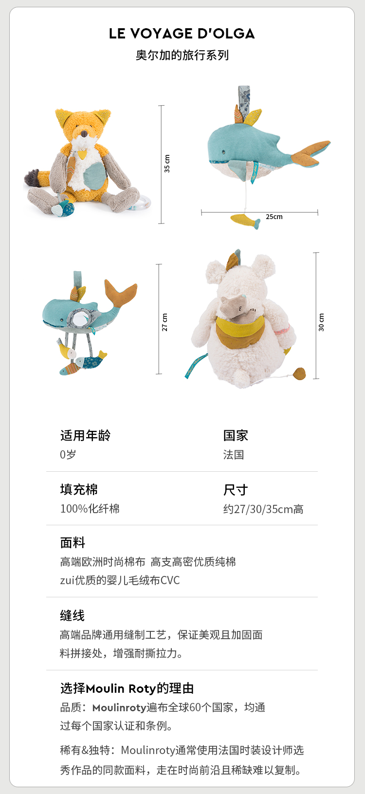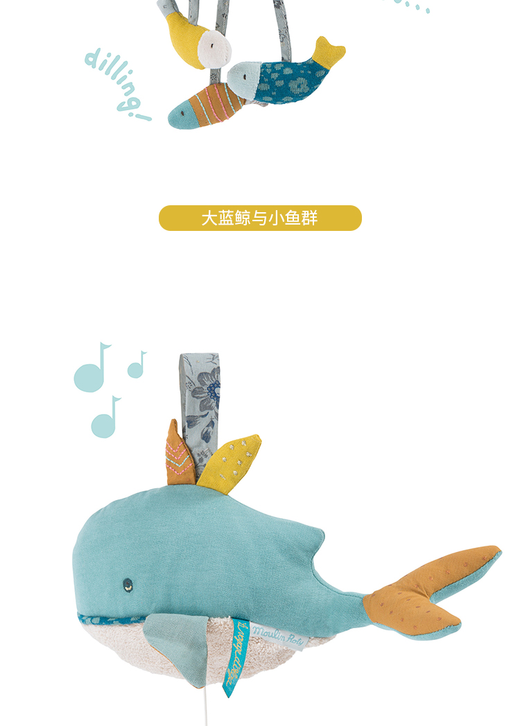 Moulin Roty 大蓝鲸与小鱼群 多功能/启蒙玩偶 适合0岁以上 附手摇铃 响纸 奥尔加的旅行系列 法国品牌-714078