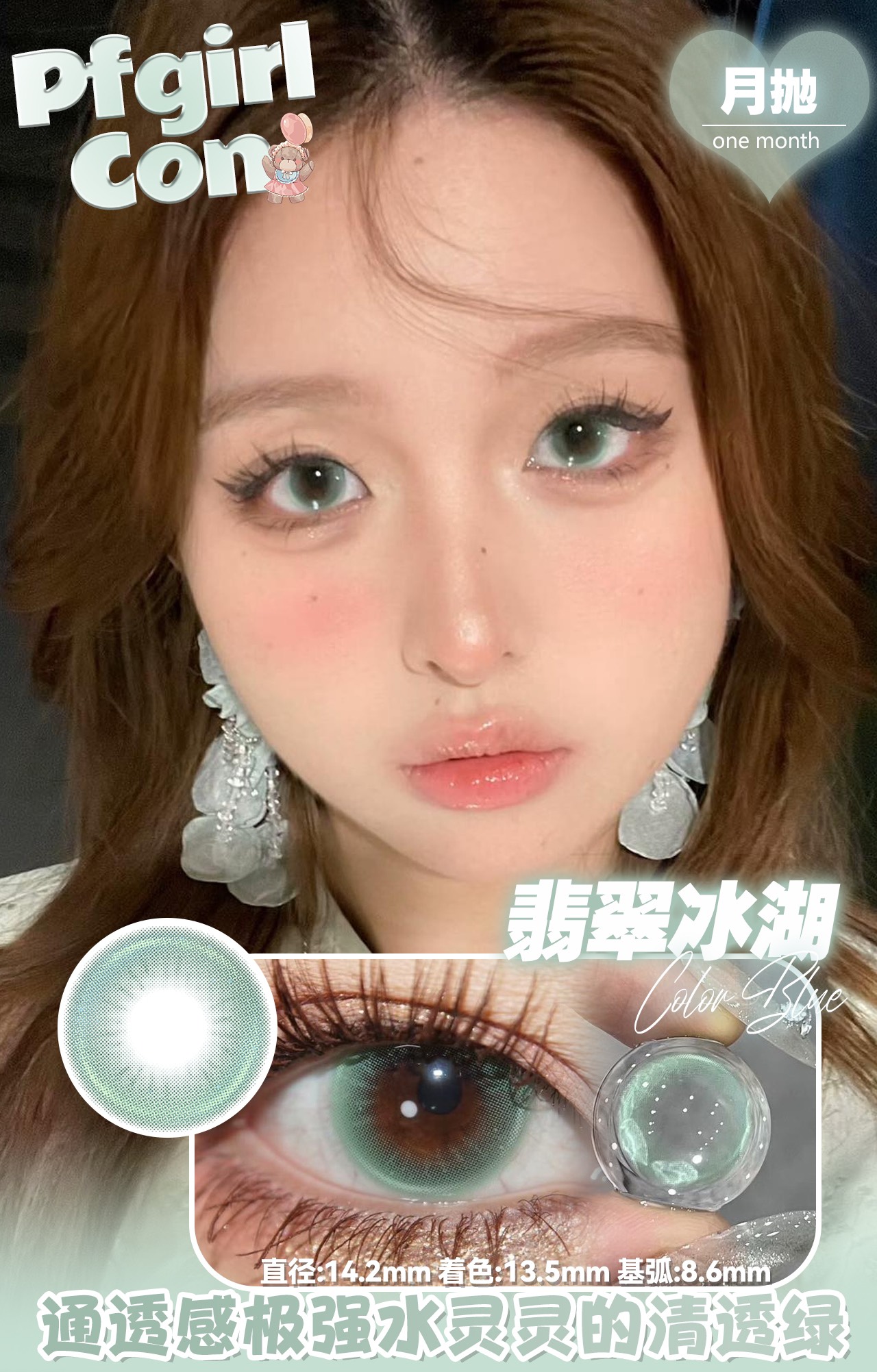 pfgirlcon月抛 翡翠冰湖/童话滤镜/忧蓝画染 14.2mm 绿/紫/蓝