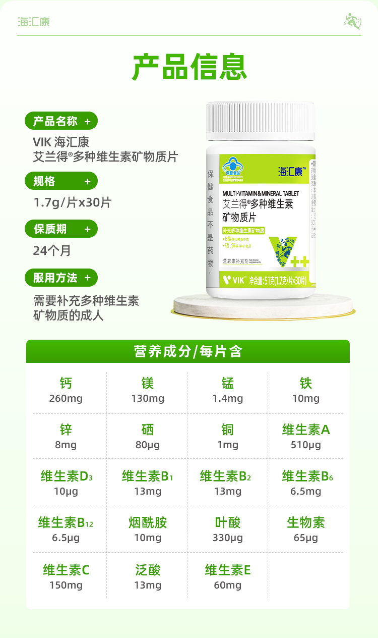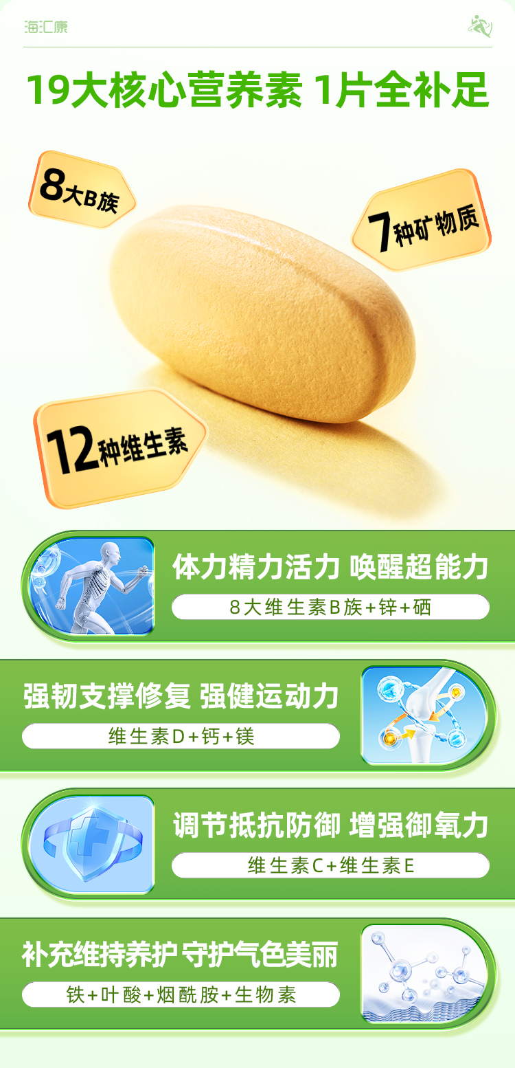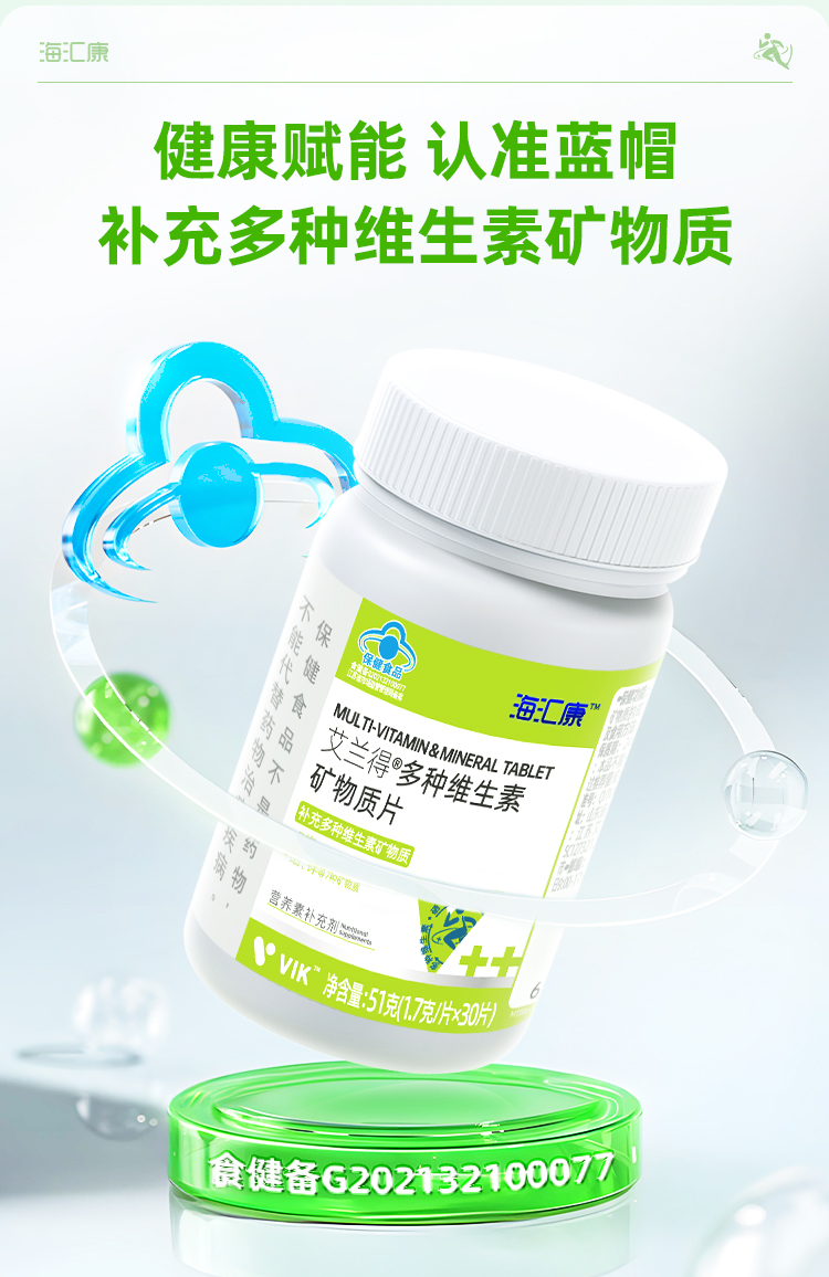 海汇康多种维生素矿物质片 蓝帽认证 8大B族 7种矿物质 12种维生素