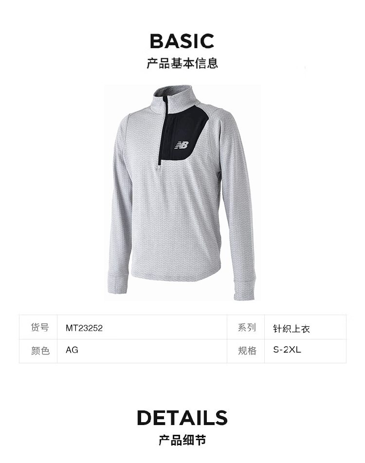 NEW BALANCE/NB 男运动长袖NB户外运动防风保暖无帽MT23252