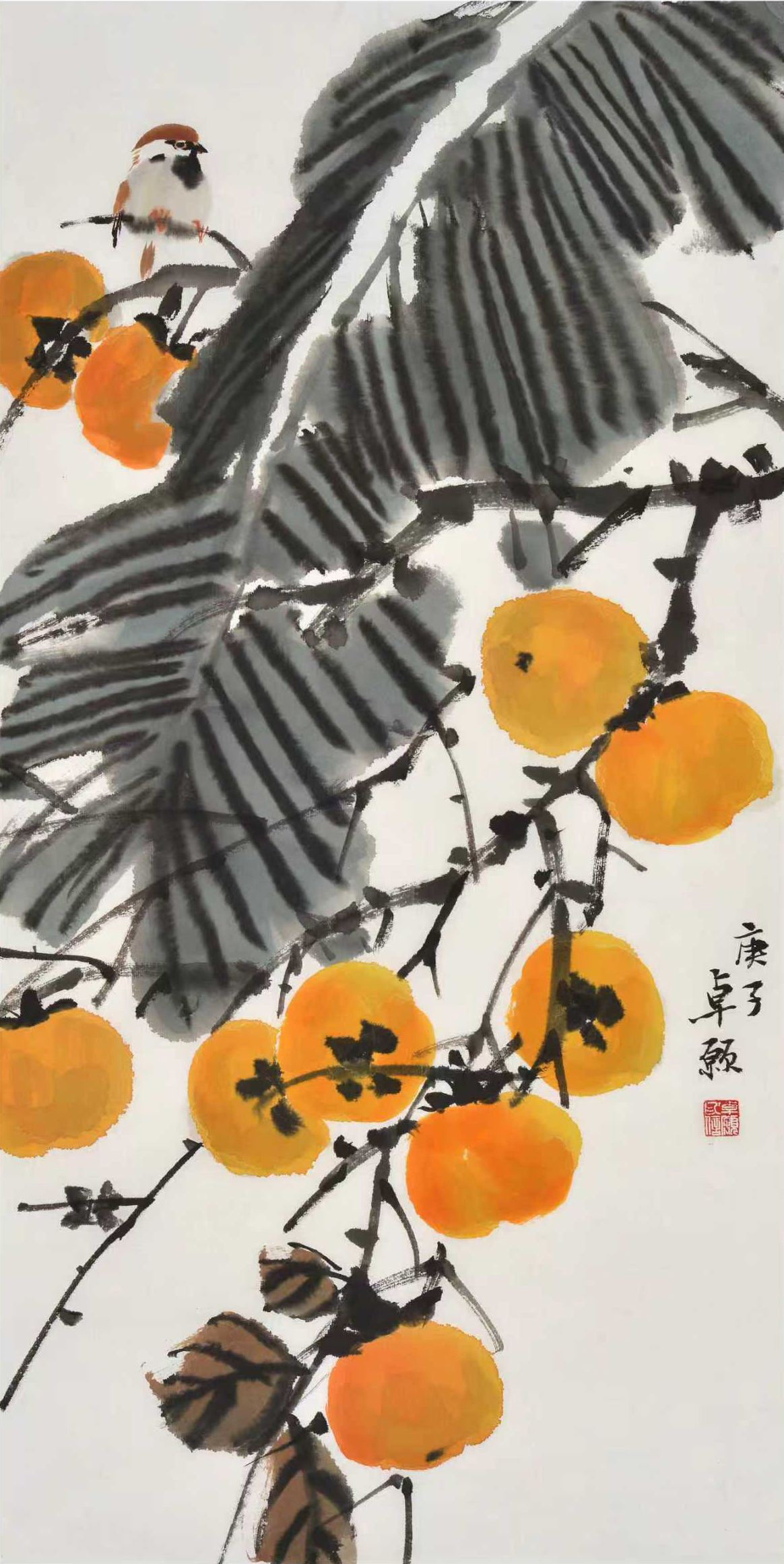 卓愿《好鸟择高枝》68x34CM 手绘纸本宣纸国画作品