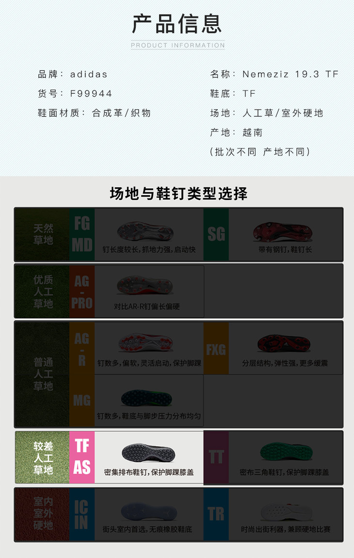 小李子专正品adidas阿迪达斯NEMEZIZ19.3 TF碎钉足球鞋童款F99944