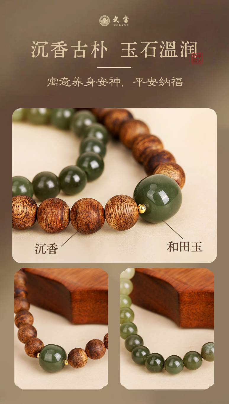 武当·灵玉沉香手串 新疆渐变和田玉 温润细腻 精选沉香 油脂丰富