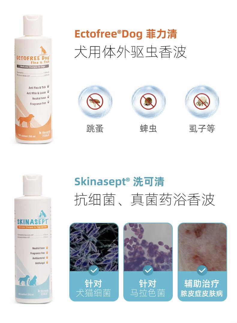 百美达 宠物药浴香波 洗可清/脂溢清/菲力清