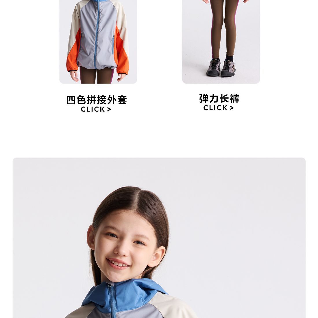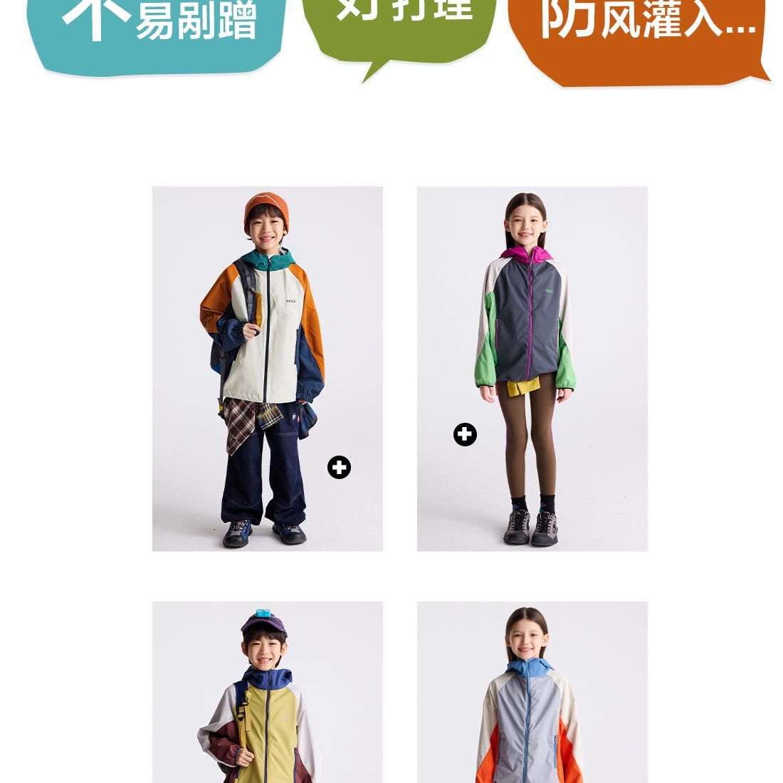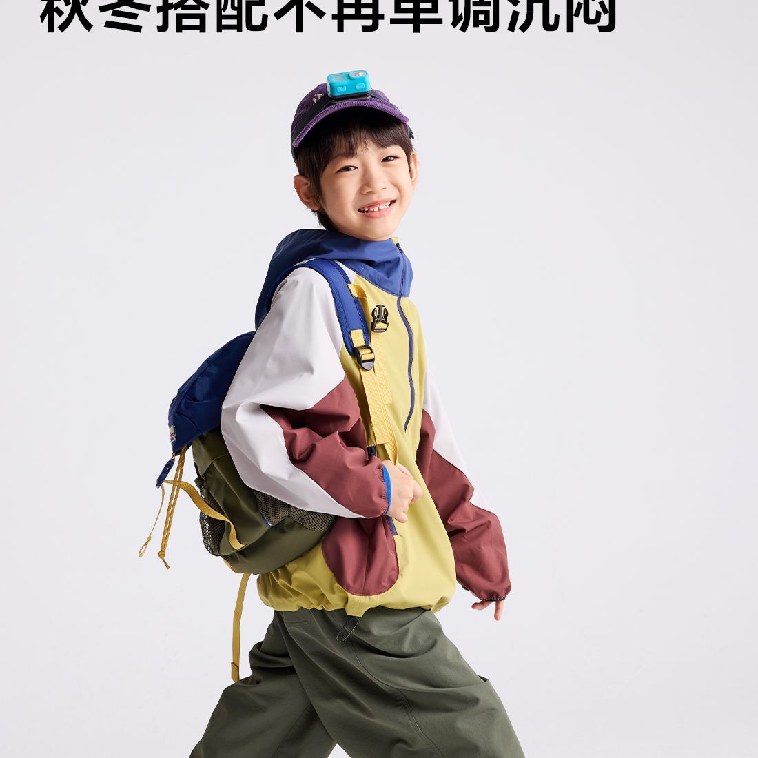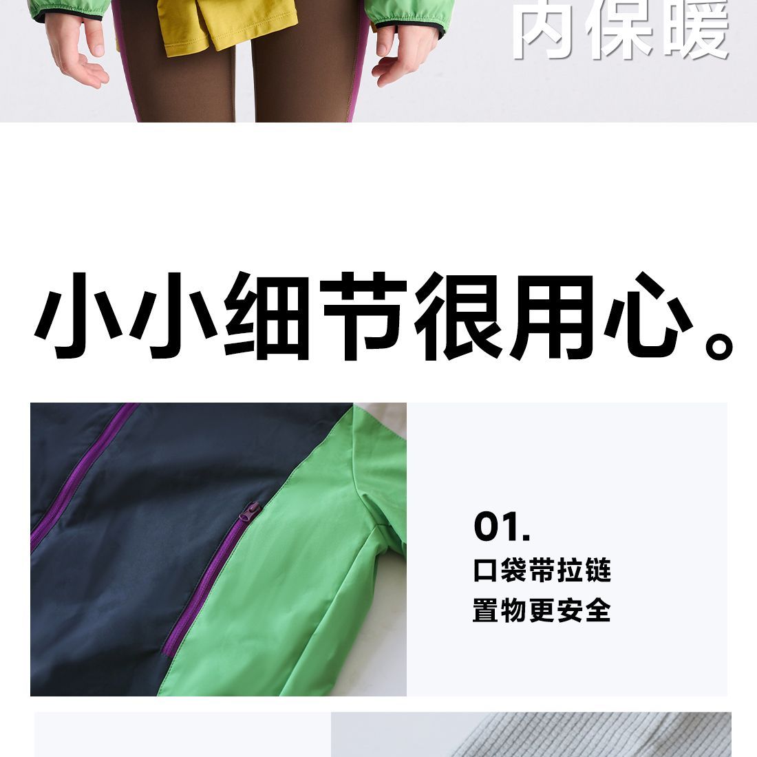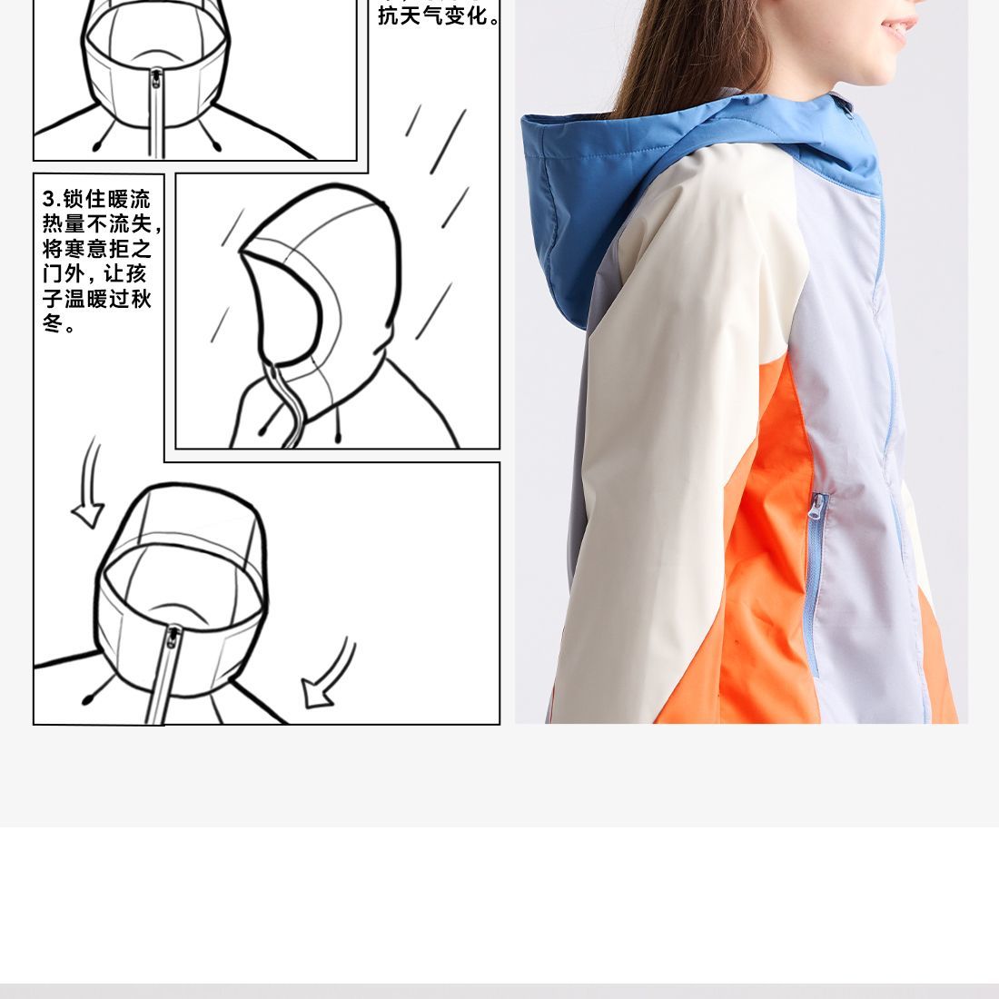 fx-咕噜日记童装儿童魔方绒拼色外套男童2025秋季女童防泼水连帽夹克PQWT2529