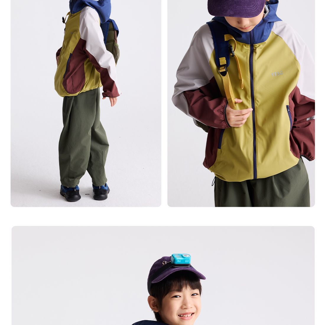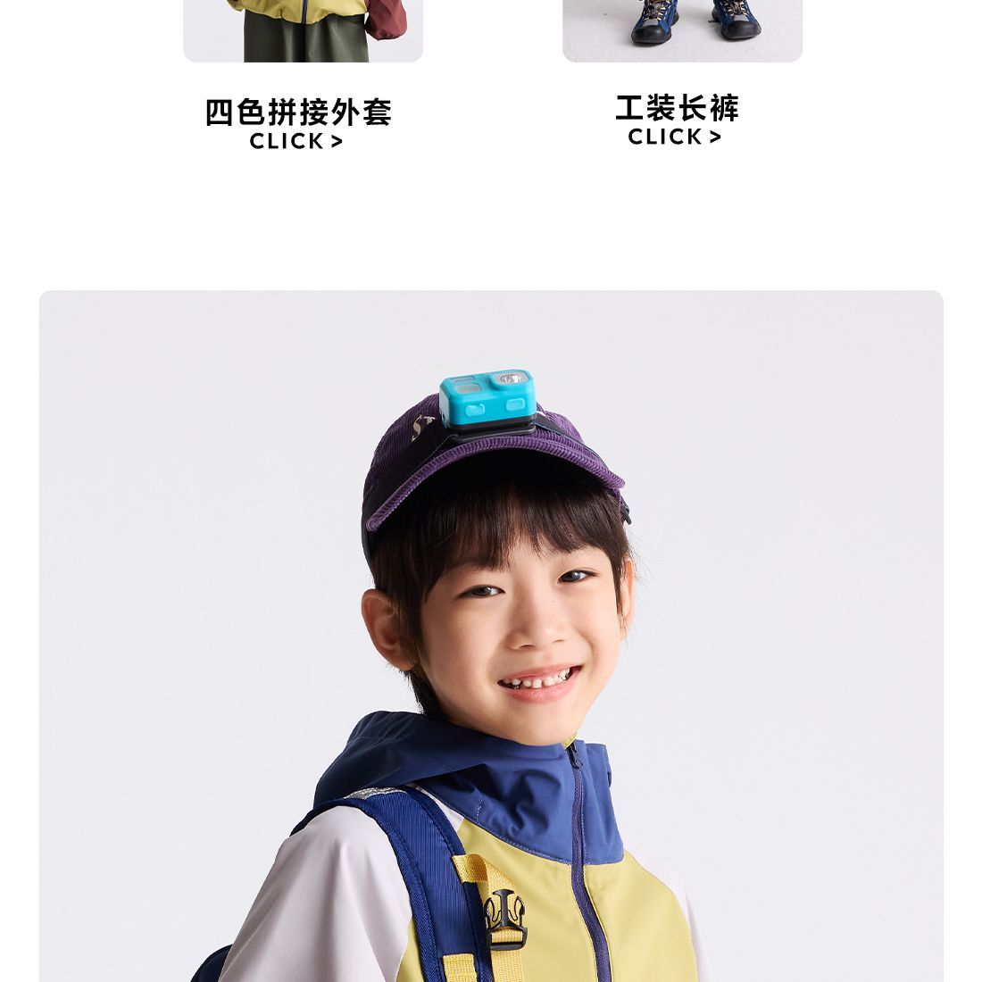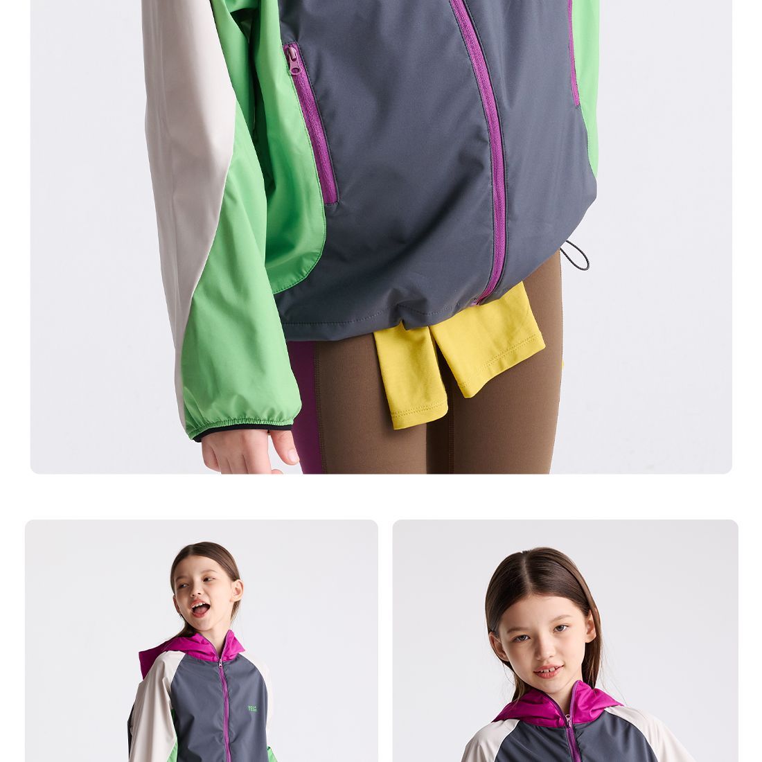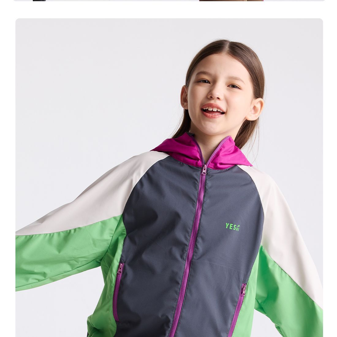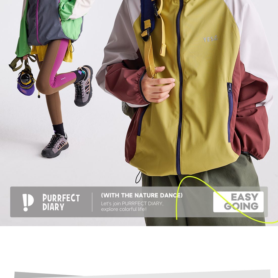 fx-咕噜日记童装儿童魔方绒拼色外套男童2025秋季女童防泼水连帽夹克PQWT2529