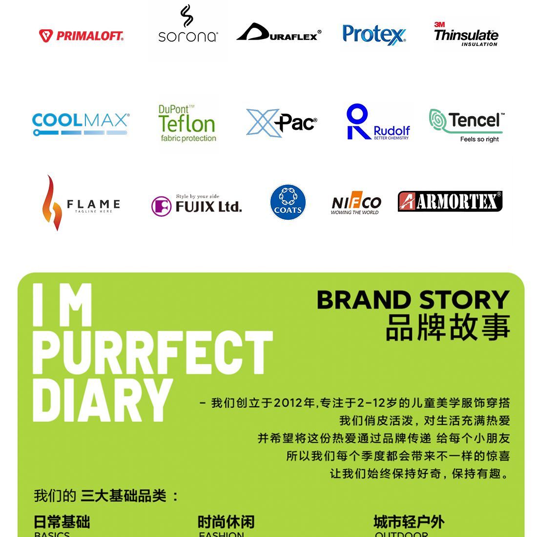 - Purrfect-Diary专注于贴近自然随性的穿着概念,轻奢平价的童装文化传播,在产品设计上更加注重婴童穿着的舒适性、安全性、更出众的国际化品牌,将欧美的育婴文化在中国进行深入的传播与推广。