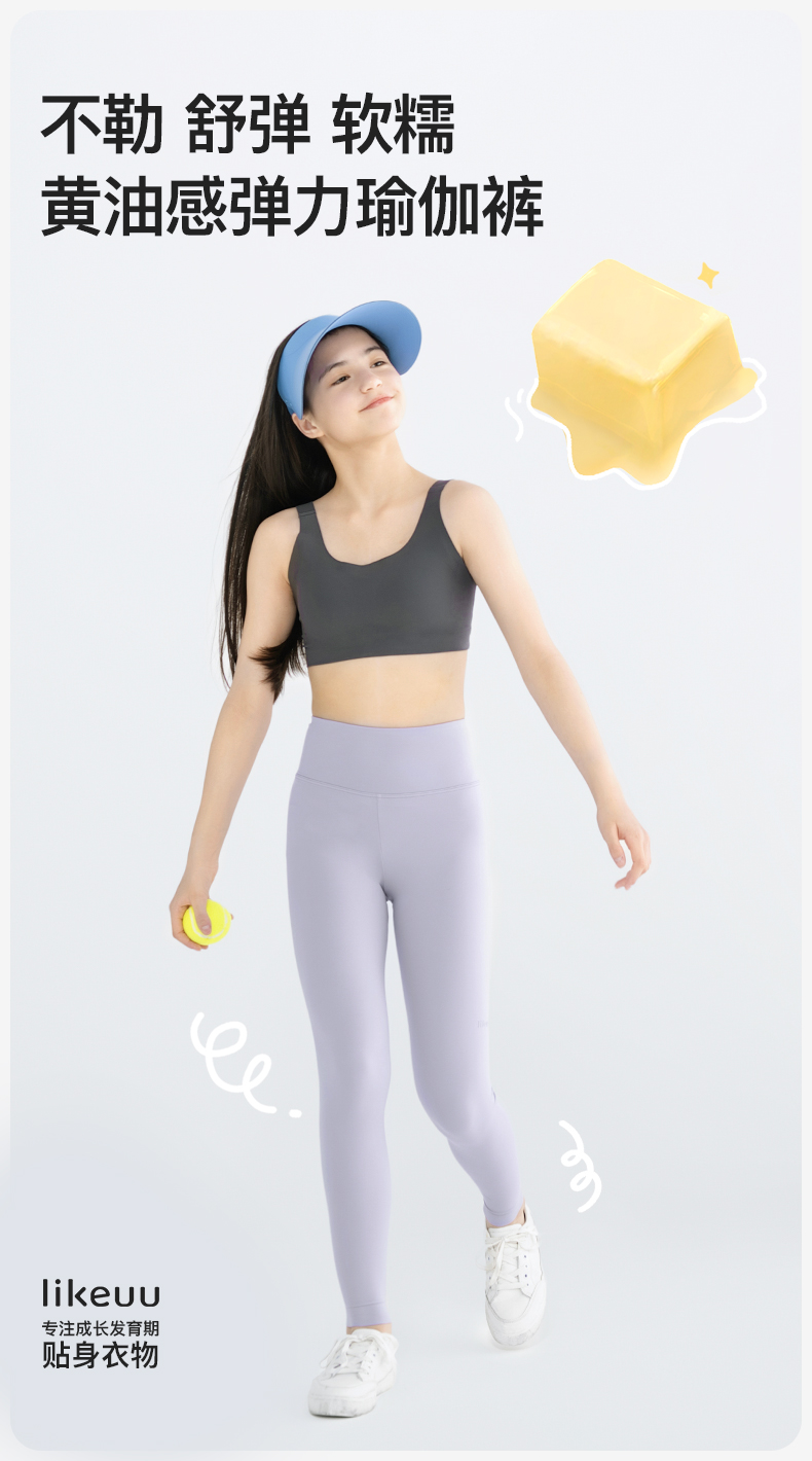 ubras旗下likeuu儿童瑜伽裤女童轻薄透气运动裤学生打底裤高弹空气层