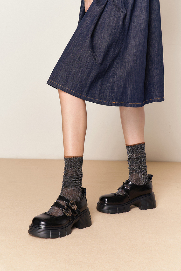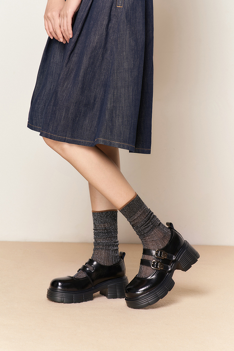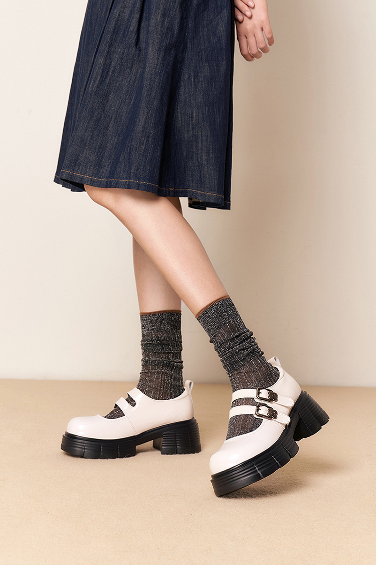 星期六日系甜酷风双扣厚底乐福SSD3111500