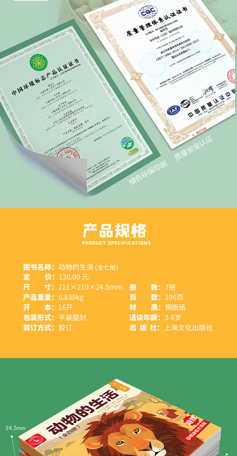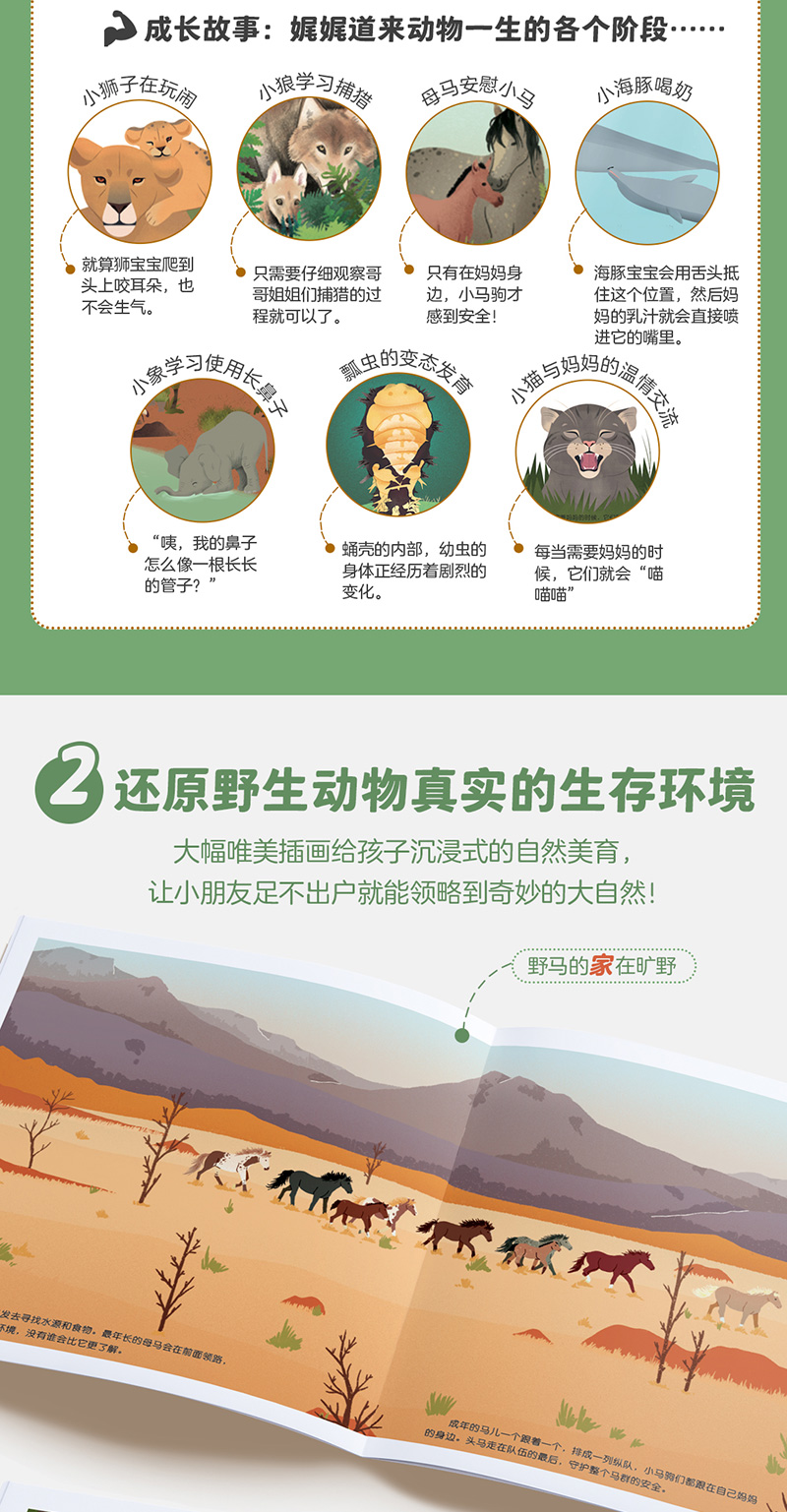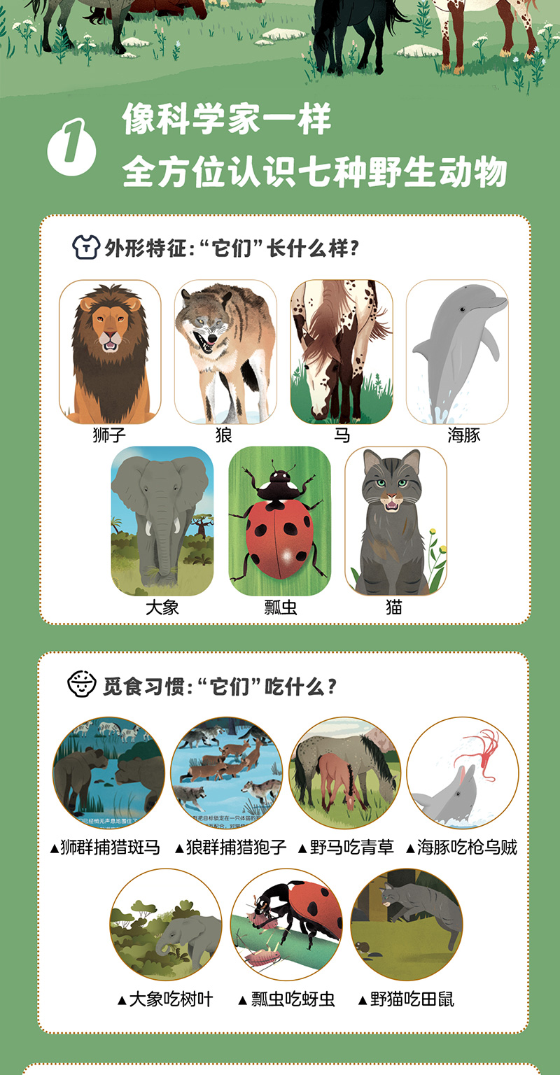 【全七册】动物的生活 狼、狮子、海豚、马、大象、瓢虫、猫 3-6岁儿童自然通识类野生动物朋友科普绘本童书籍阅读