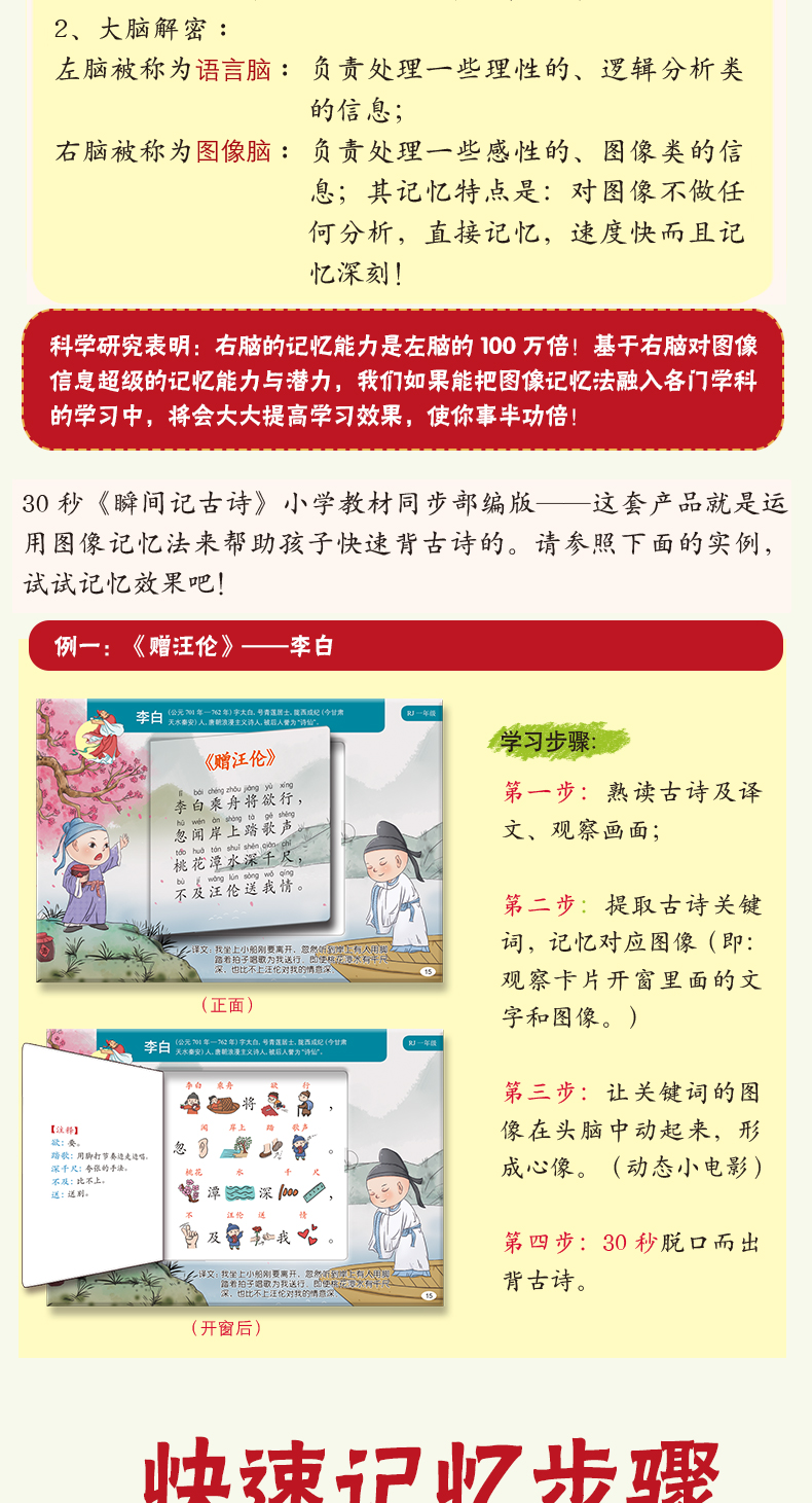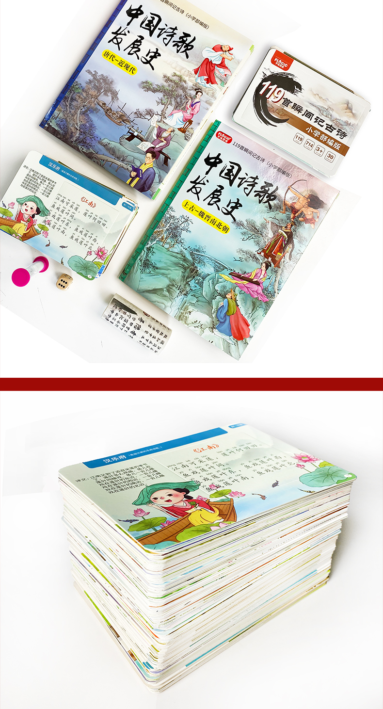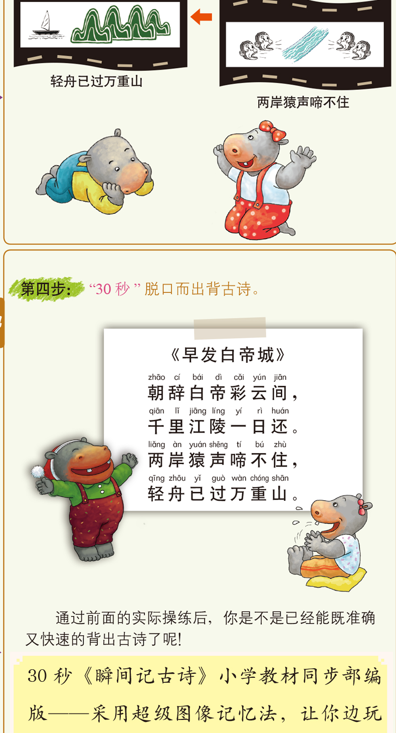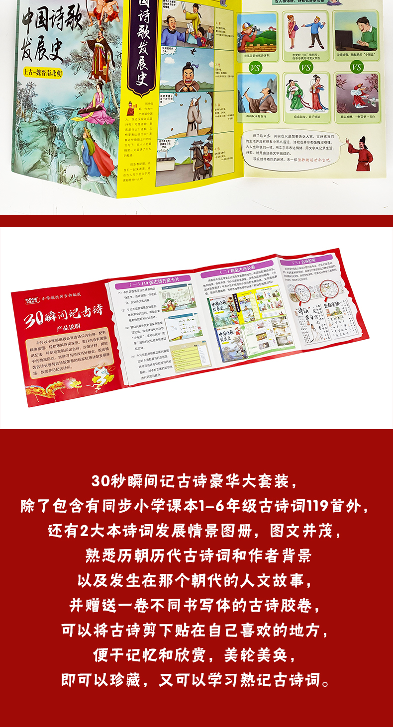 《30秒瞬间记古诗》小学同步部编版 含:119首古诗+古诗发展史2本书+古诗胶带