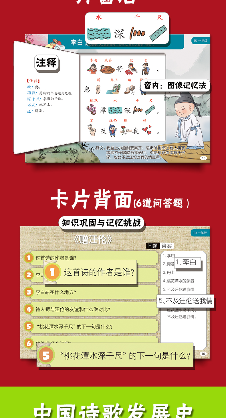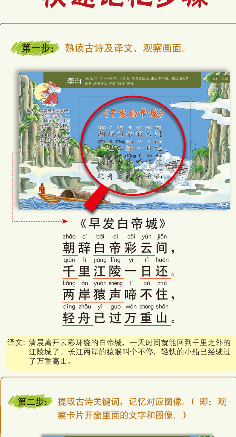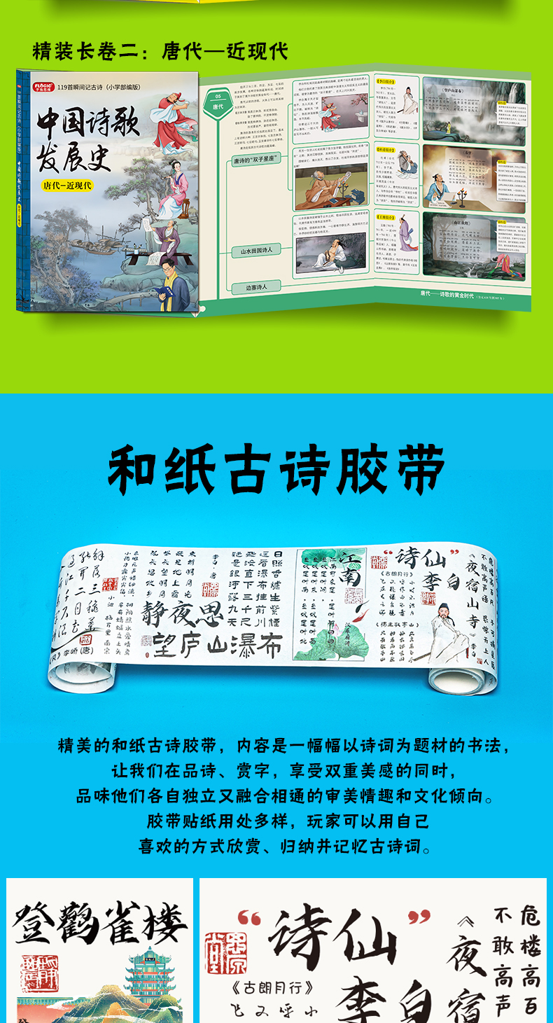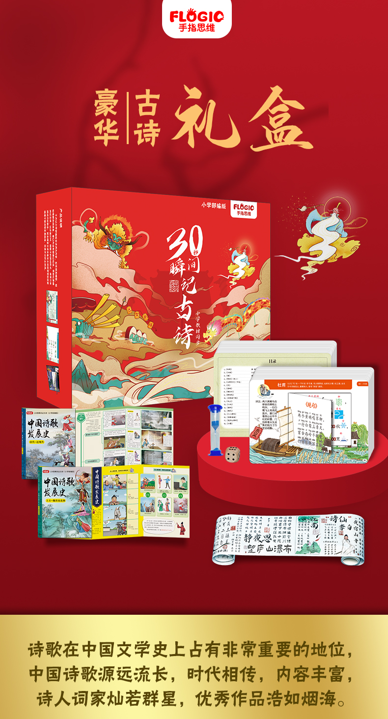 《30秒瞬间记古诗》小学同步部编版 含:119首古诗+古诗发展史2本书+古诗胶带