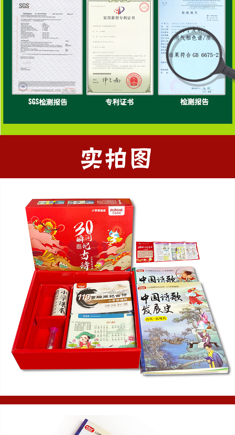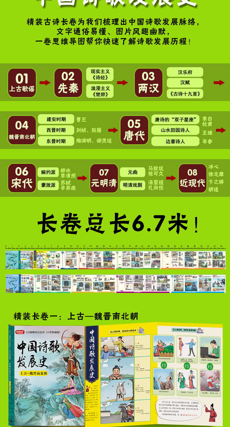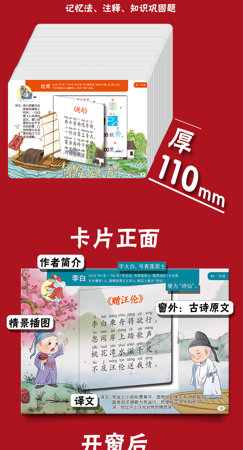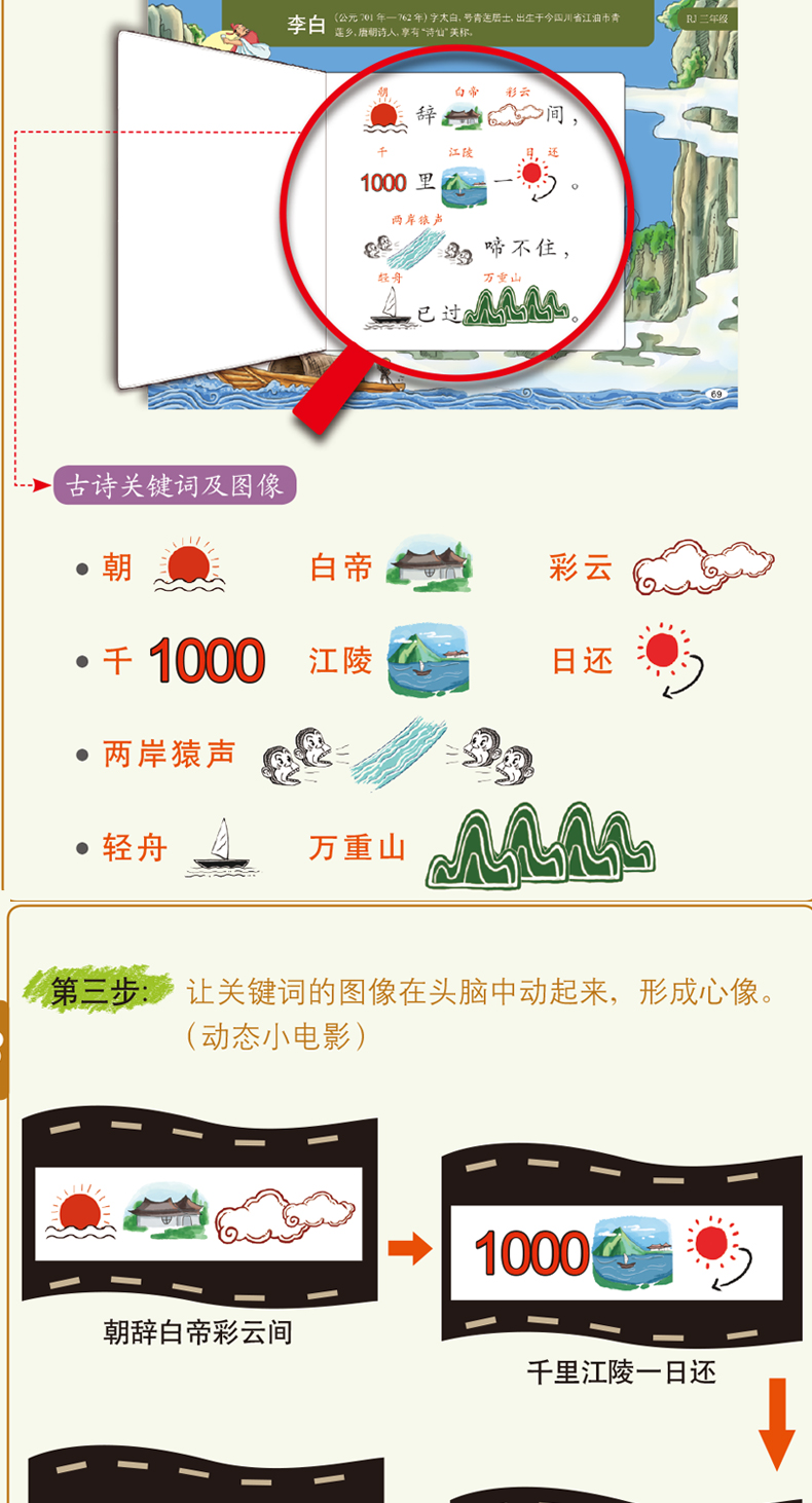 《30秒瞬间记古诗》小学同步部编版 含:119首古诗+古诗发展史2本书+古诗胶带