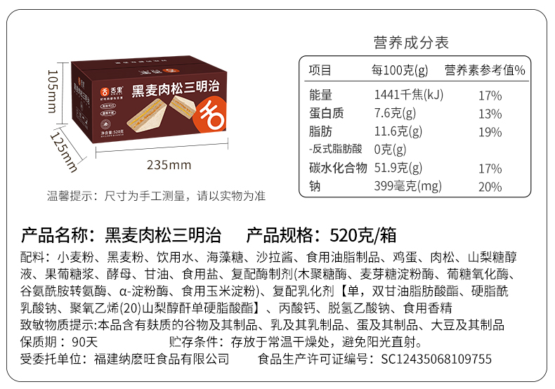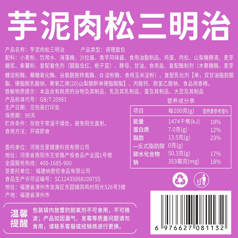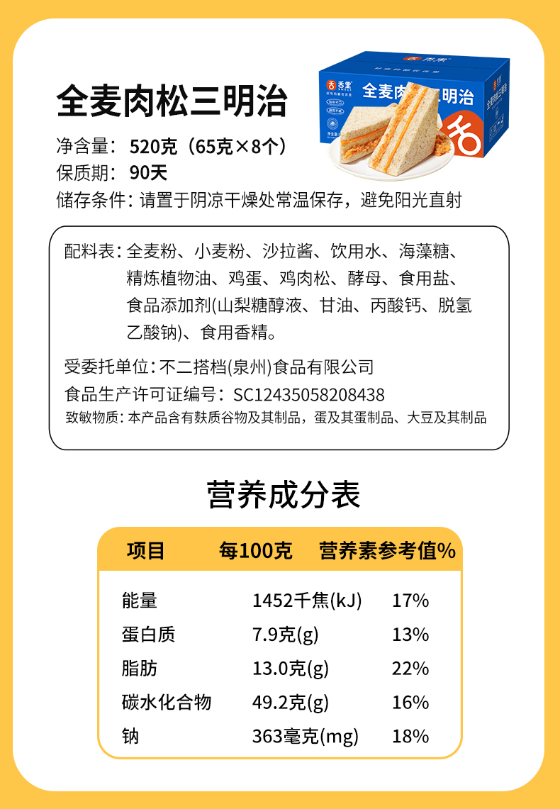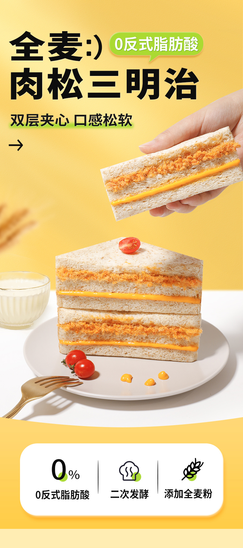 舌里【全麦肉松三明治】早餐搭档 松软可口