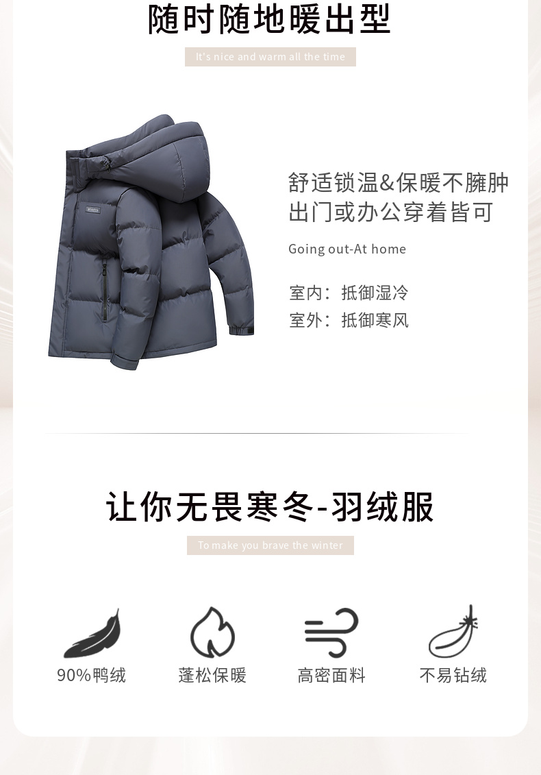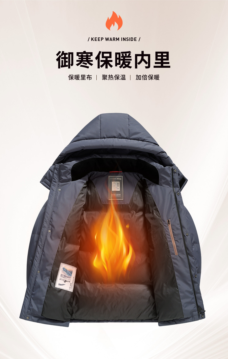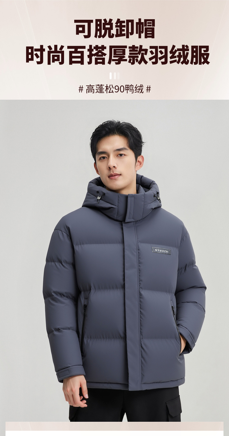 【含鸭绒】圣得西男士可拆卸连帽羽绒服2025冬季新款扛皱百搭外套