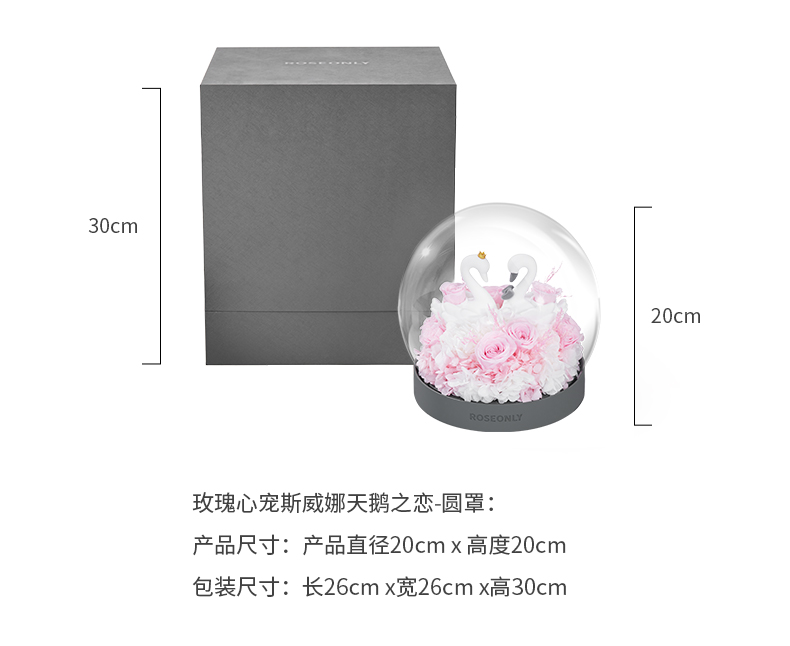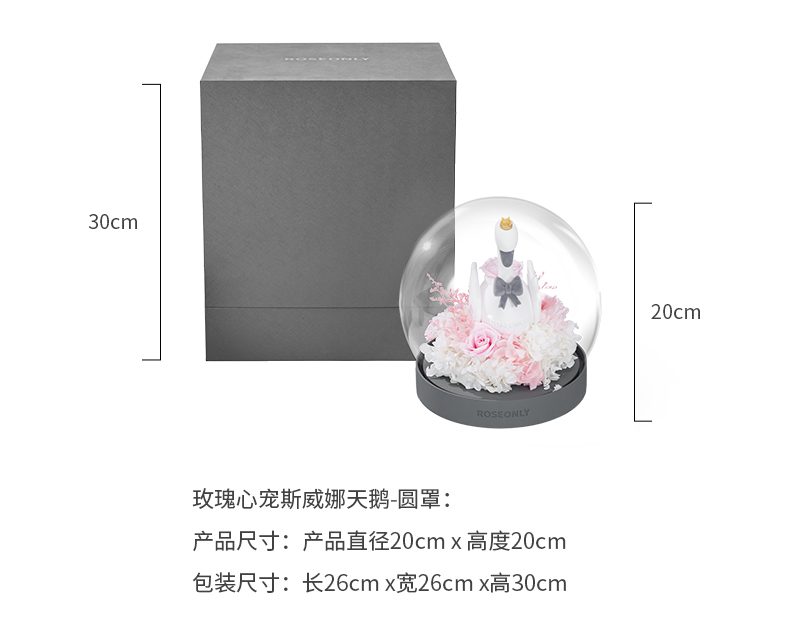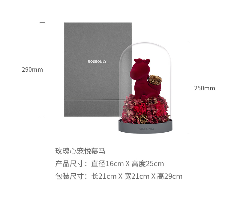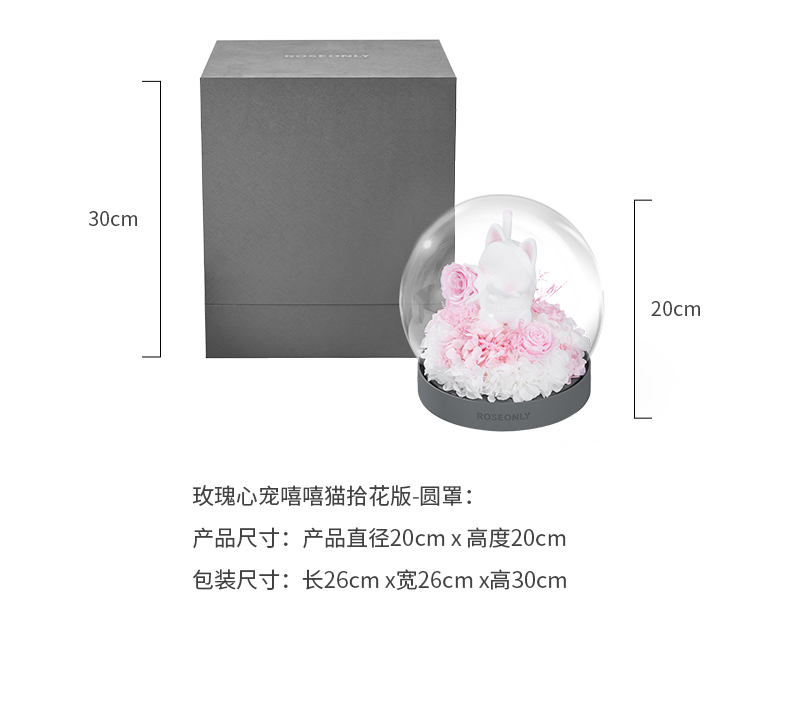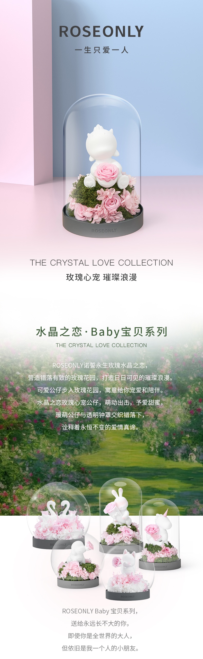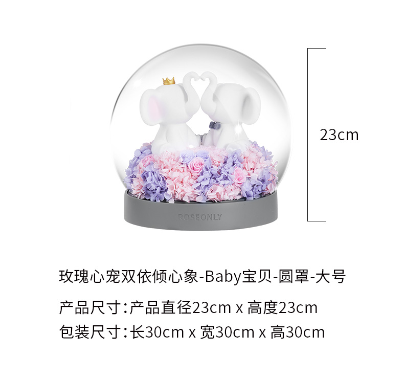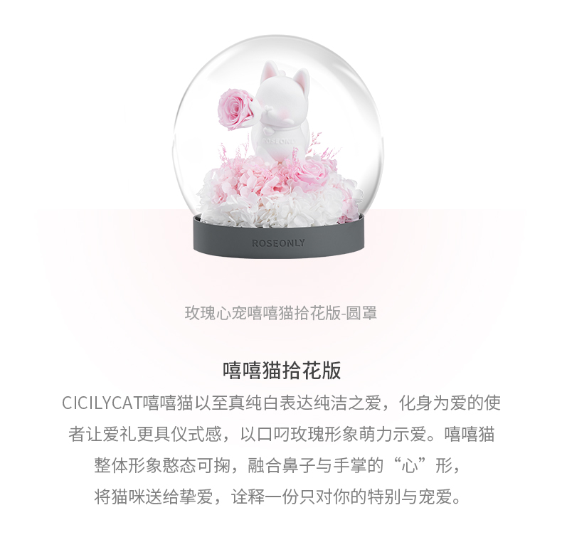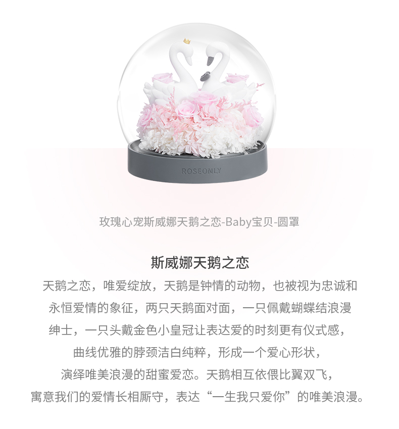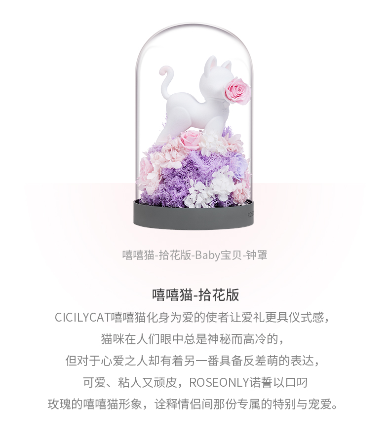 【水晶之恋】ROSEONLY诺誓 水晶之恋 永生玫瑰花 Baby宝贝系列 钟罩圆罩 白兔 白独角兽 白守爱狗 送朋友送家人