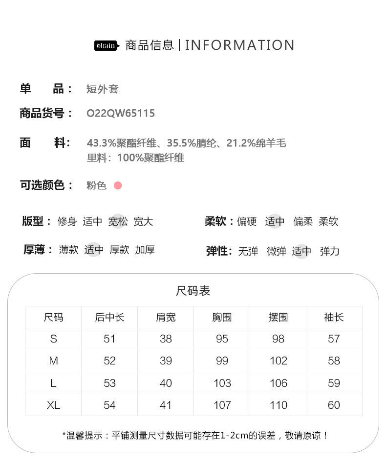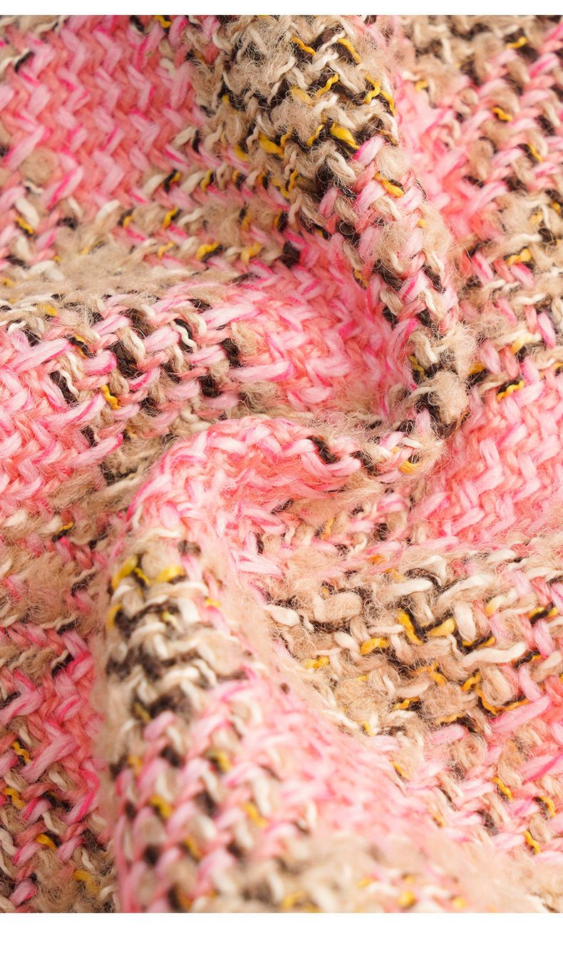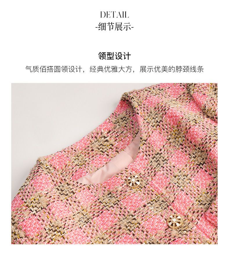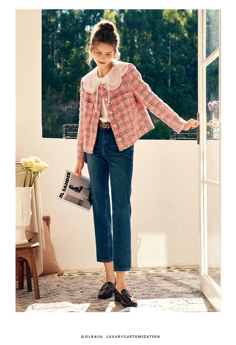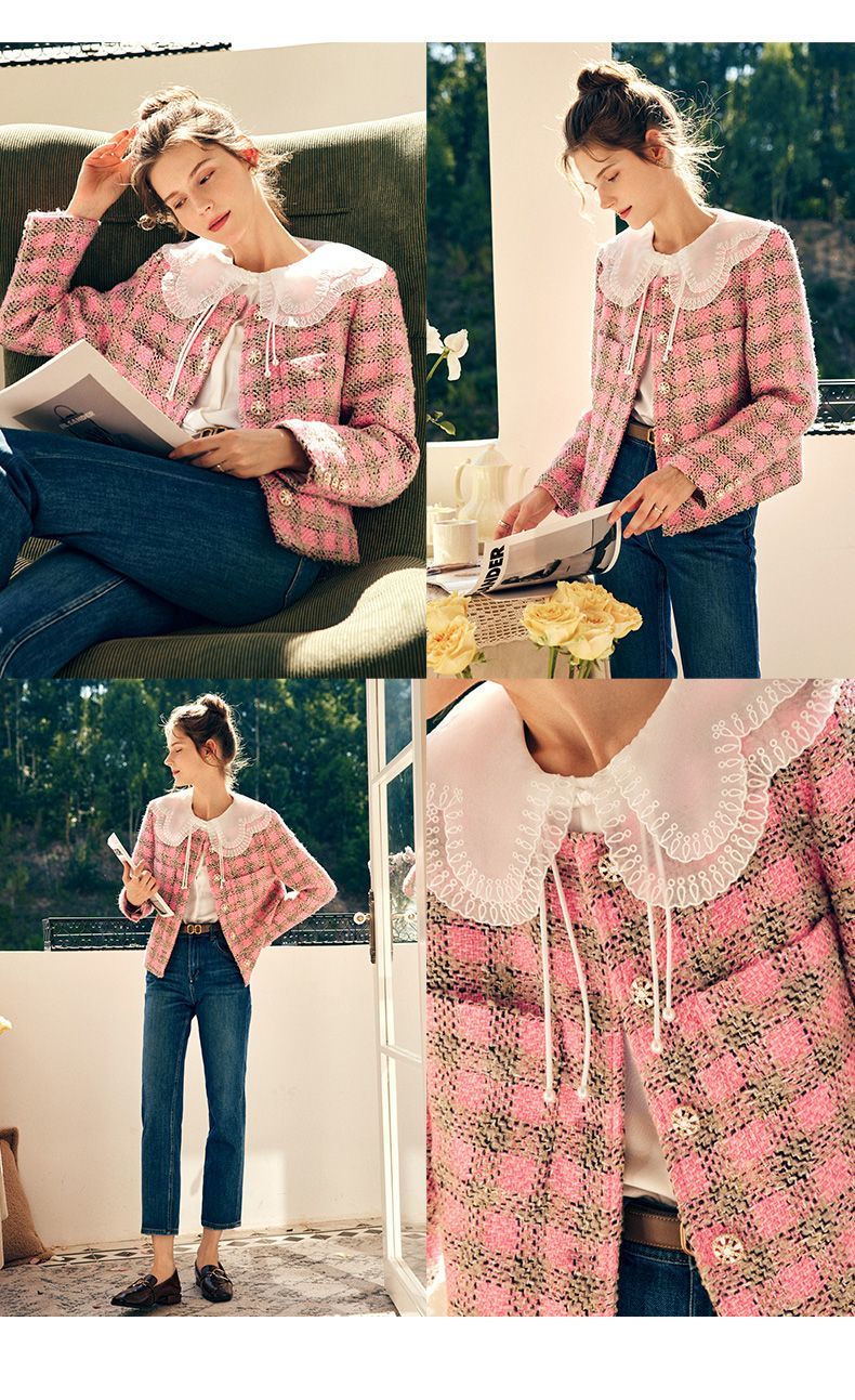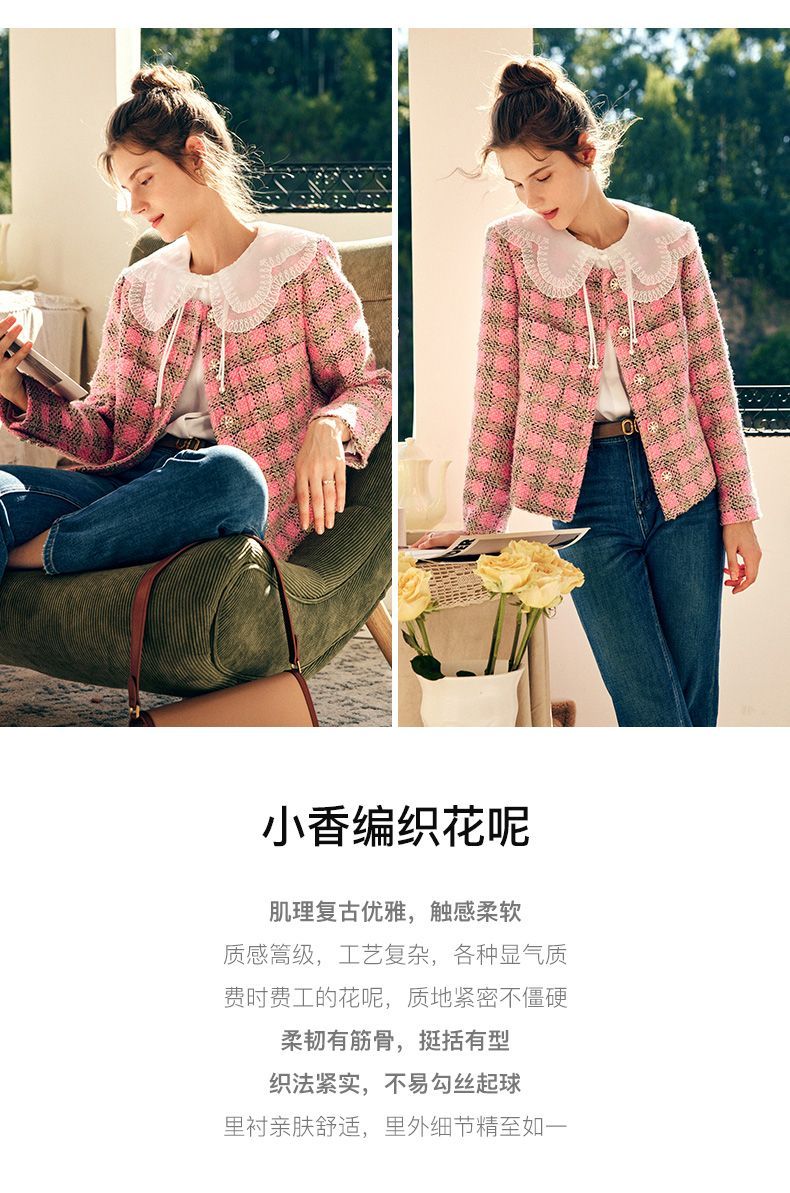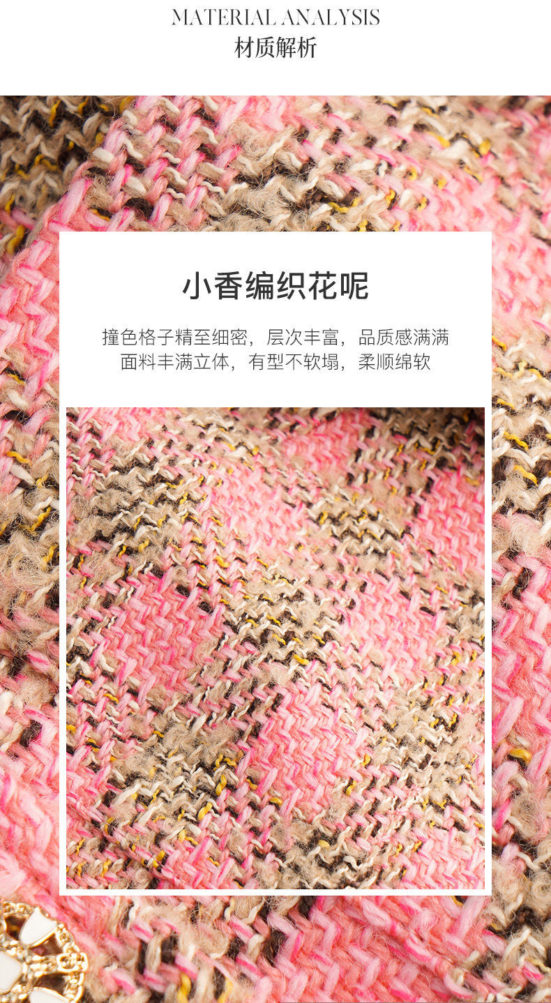 OLrain欧芮儿法式粉色小香风短外套女秋季2022年新款减龄格子上衣