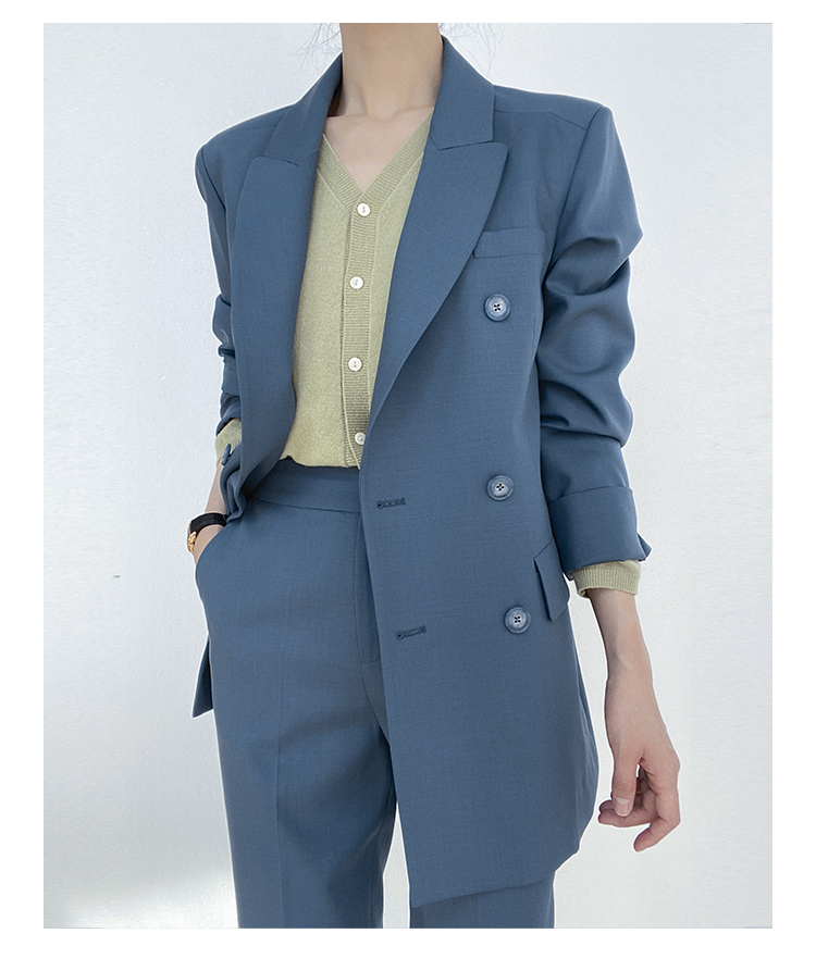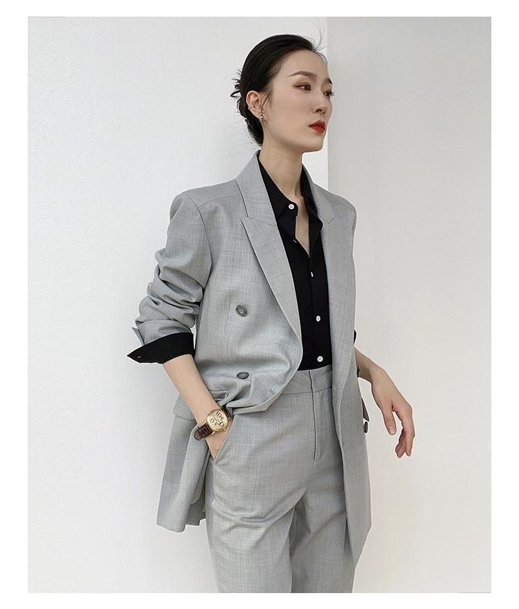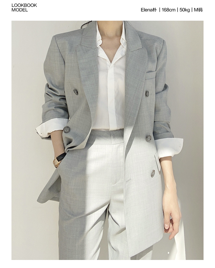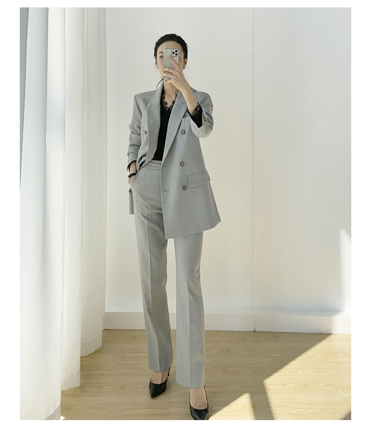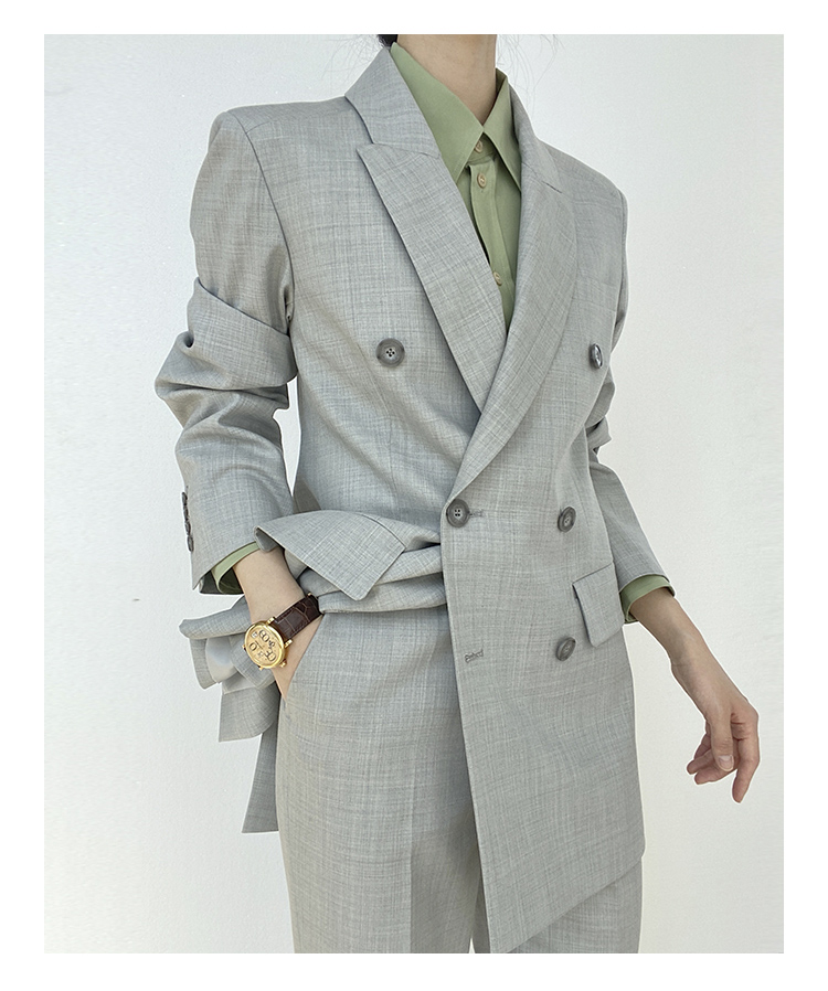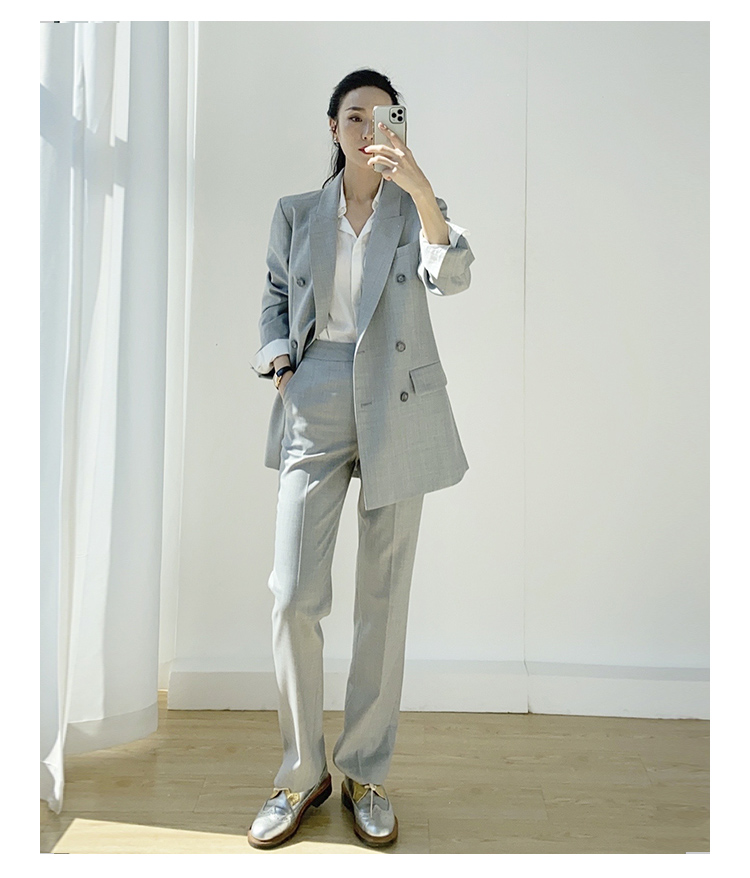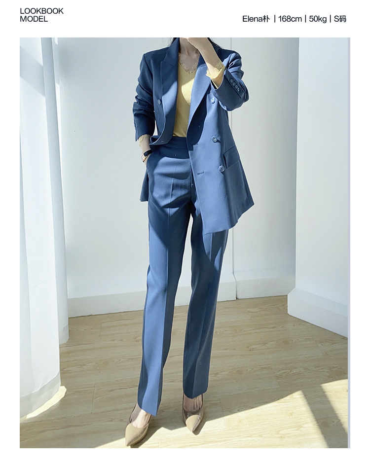 “新女绅士”通勤简约羊毛料西装西裤套装