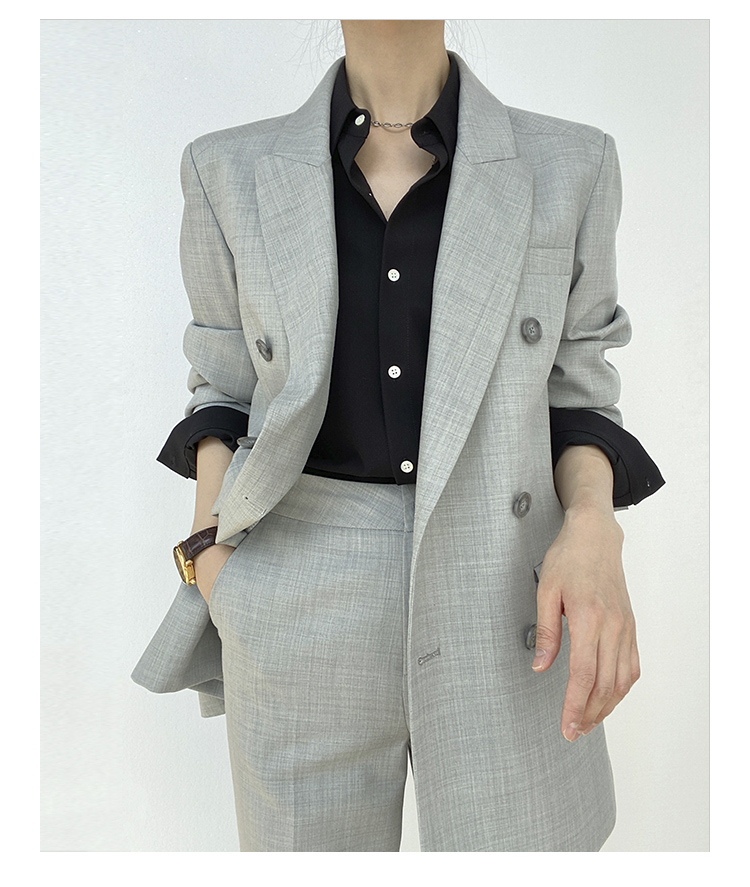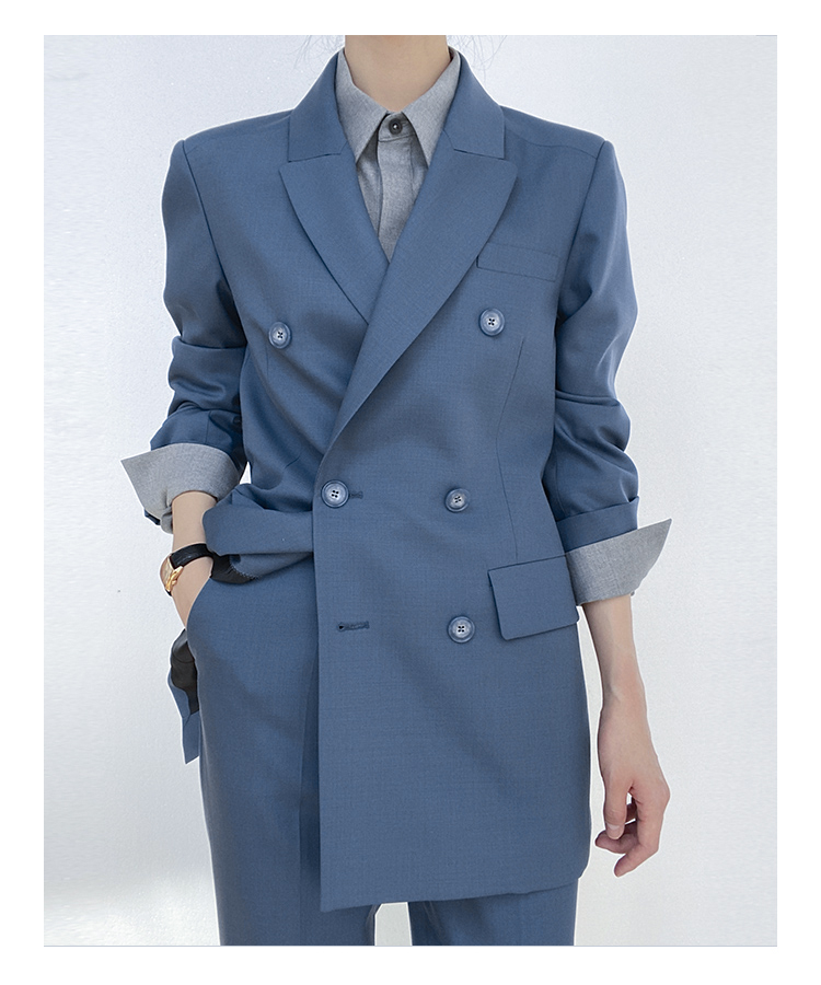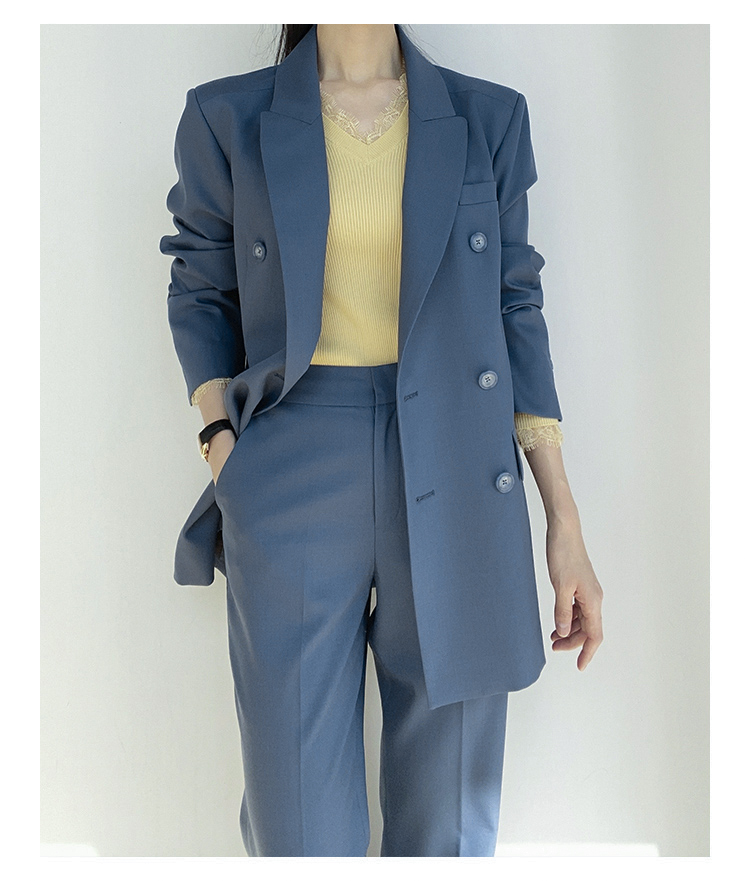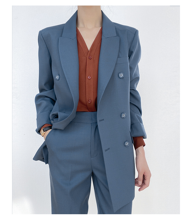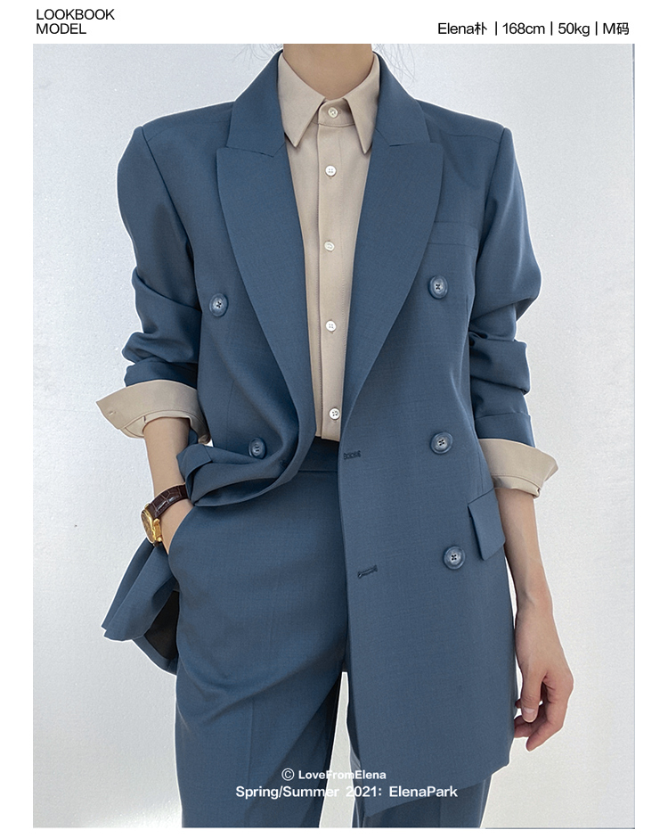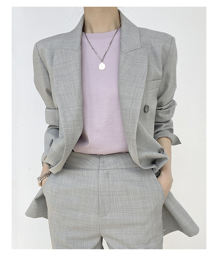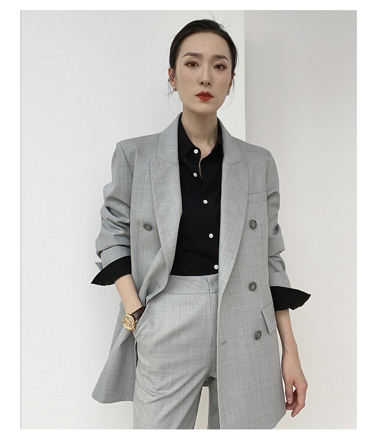 “新女绅士”通勤简约羊毛料西装西裤套装