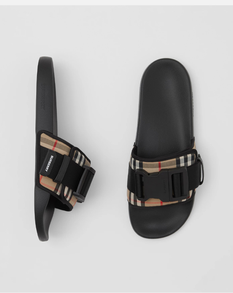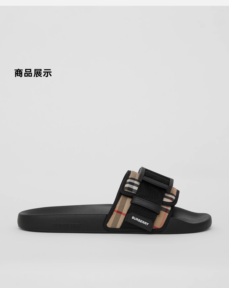 BURBERRY 巴宝莉 男士 Vintage 格纹搭扣束带棉质拖鞋 格子 8056917 A8731