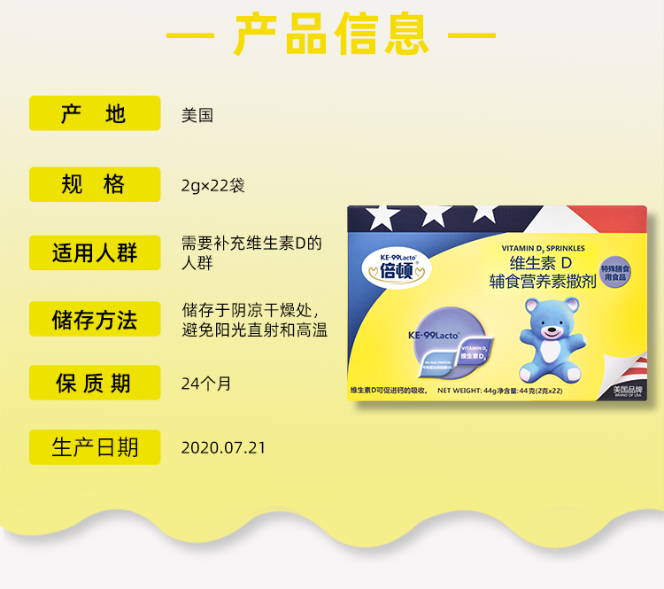 (可用积分抵扣 联系有惊喜)倍顿维生素D3 膳食营养包 44克(2克*22)