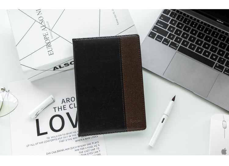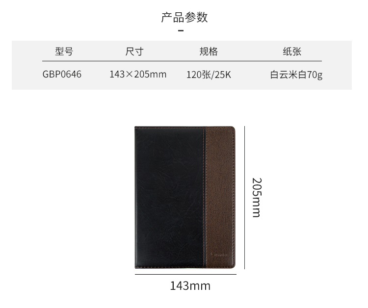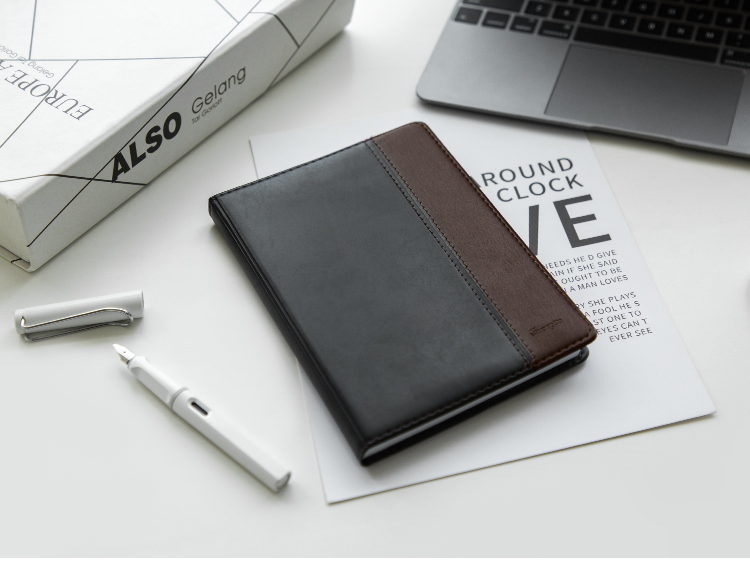 广博(GuangBo)25k拼皮商务皮面笔记本子 记事本日记本 120张棕黑GBP0646