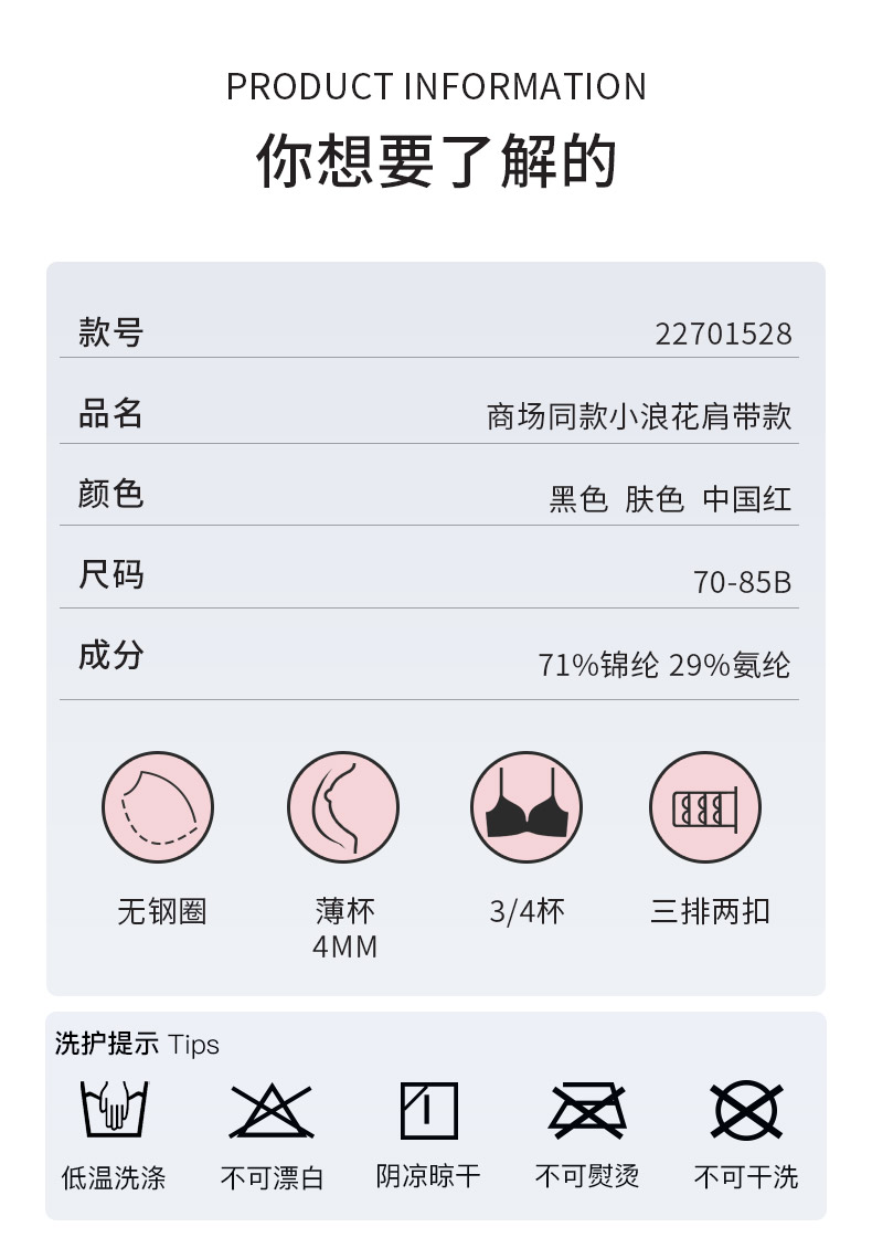 熳洁儿 自由bra无感内衣小浪花肩带棉感亲肤无痕款文胸22701528