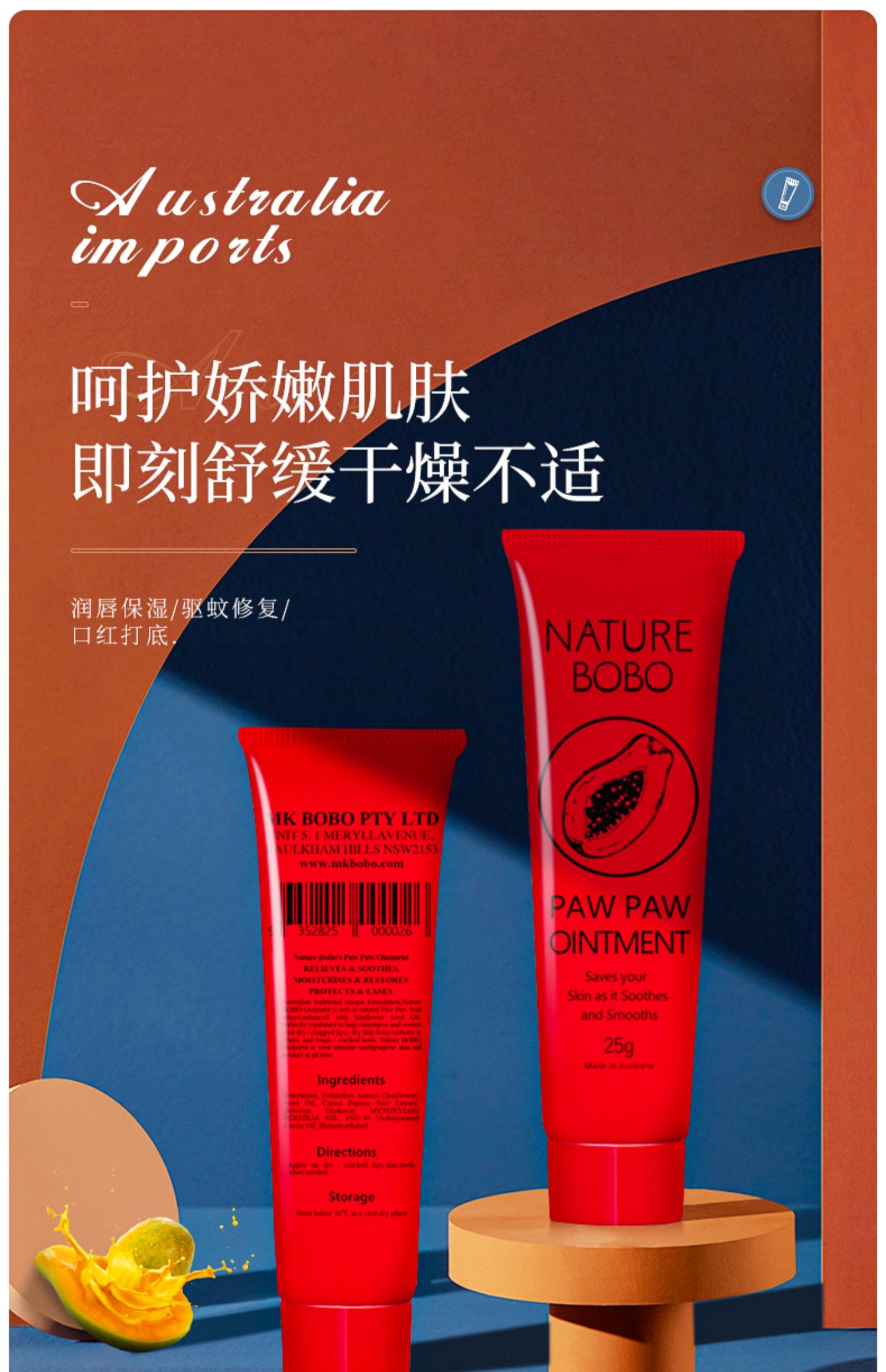 【超值2支装】澳洲进口 Nature BOBO 番木瓜膏 25g/支 润唇保湿