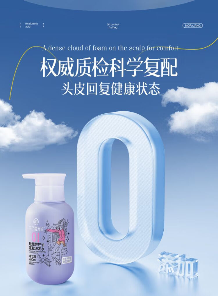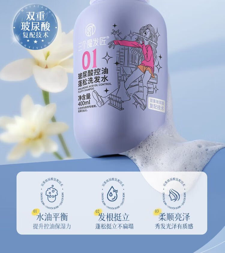 三个魔发匠玻尿酸控油蓬松洗发水 380ml