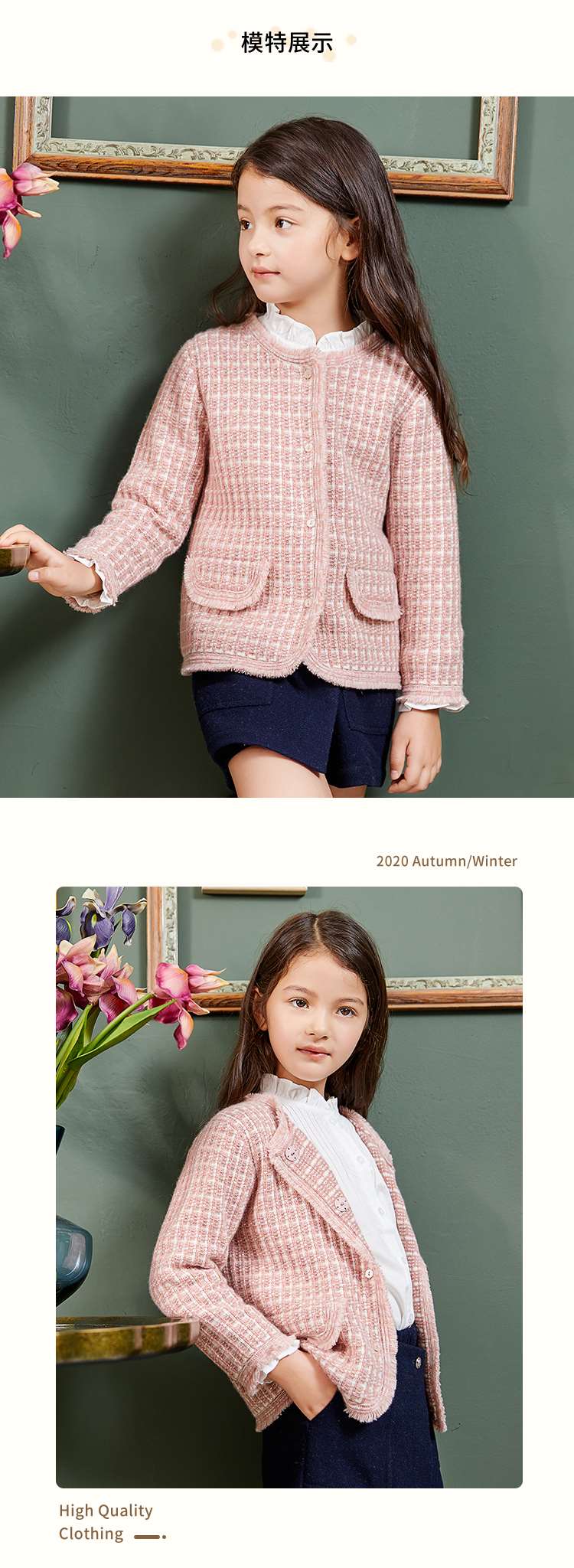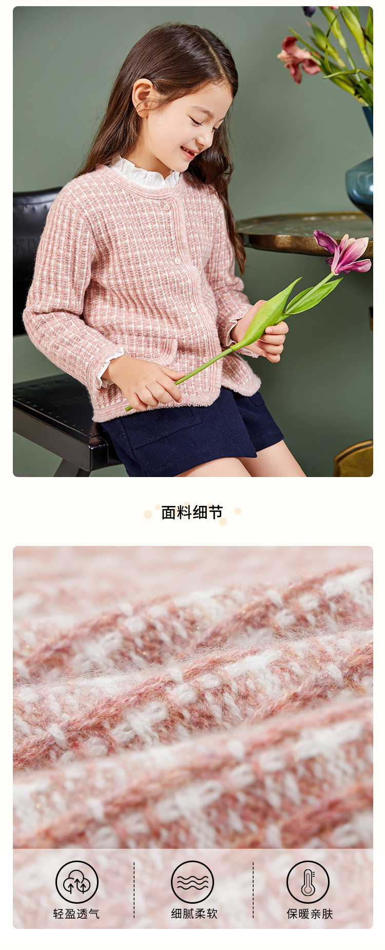 METTE羊绒世家童装羊绒外套2020秋冬女宝加厚保暖针织开衫小外套