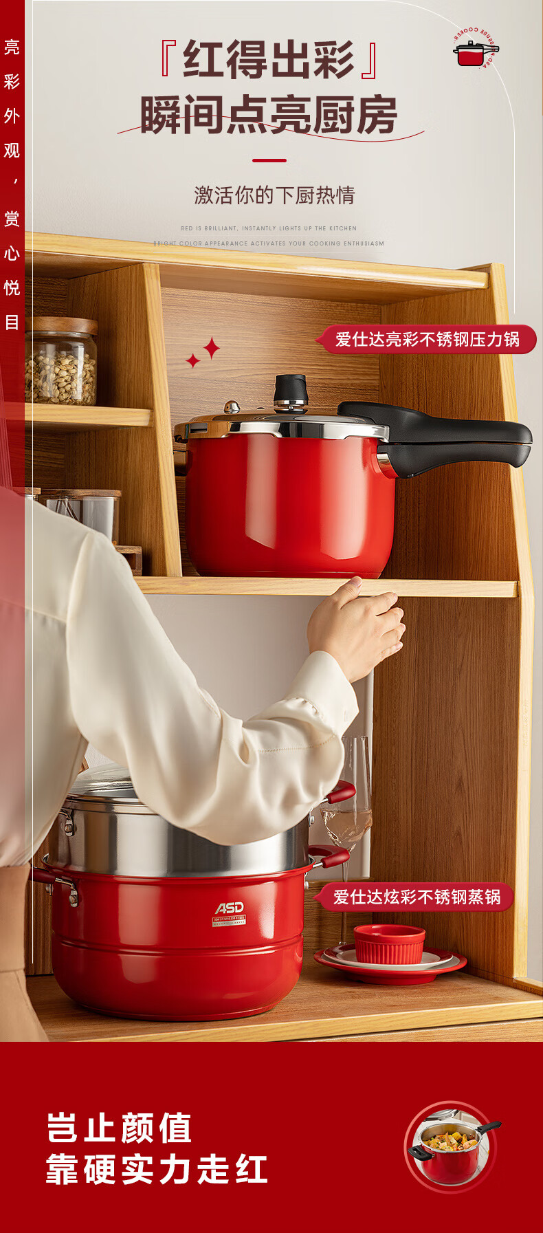【分仓直发包邮】爱仕达炫彩不锈钢压力锅YS22A7WG