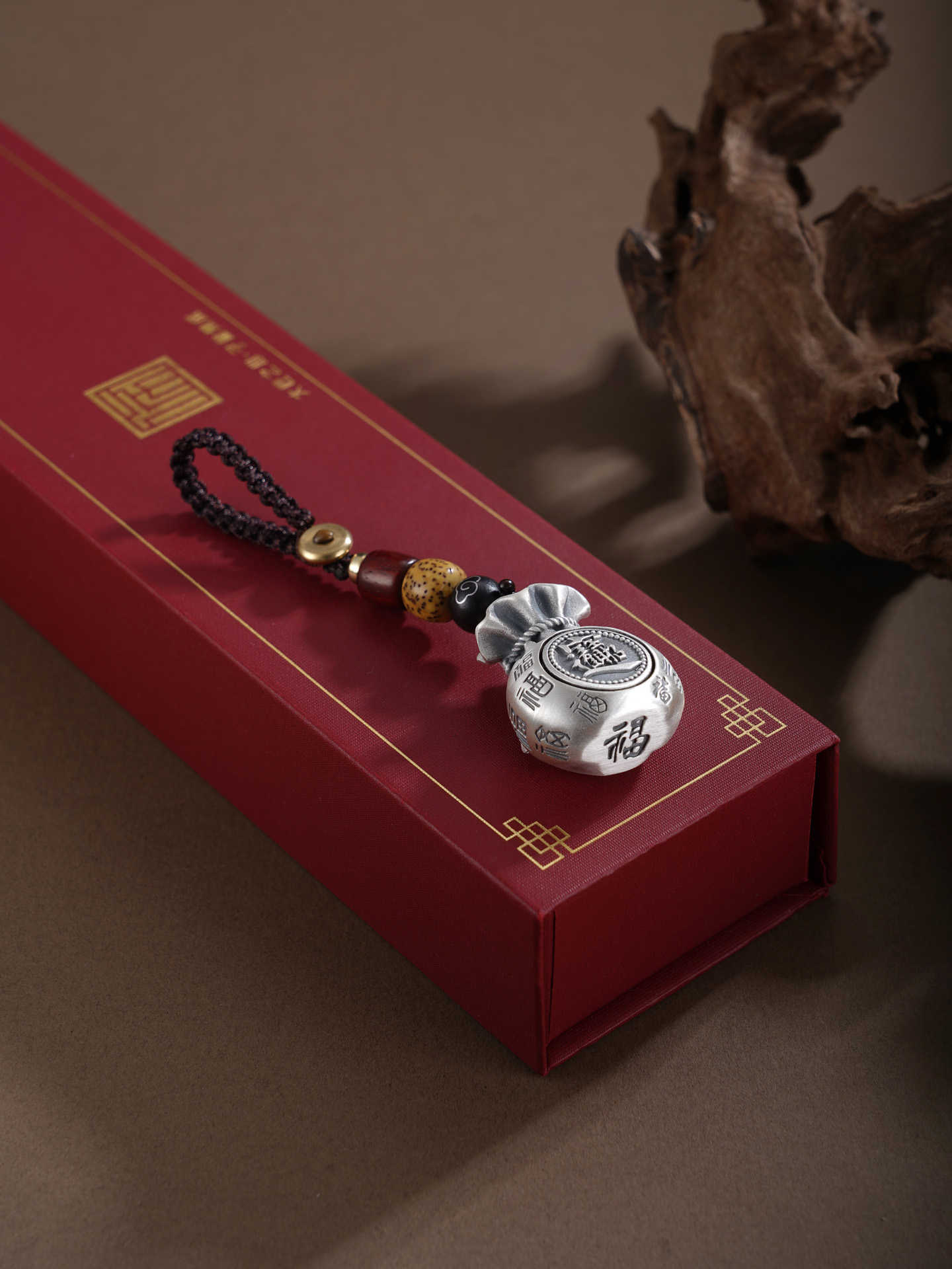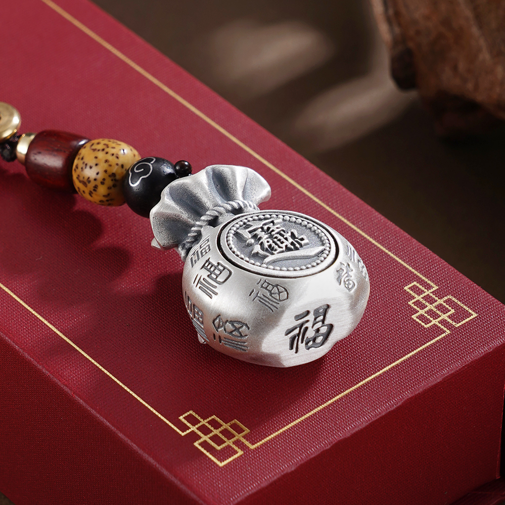 子佩集【聚宝招财】银S999钥匙扣【YSY021】小摆件可转动福袋2602