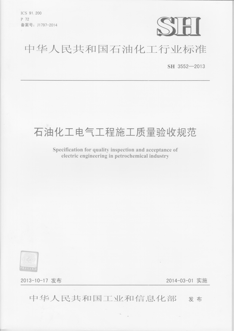 石油化工电气工程施工质量验收规范SH/T 3552-2013