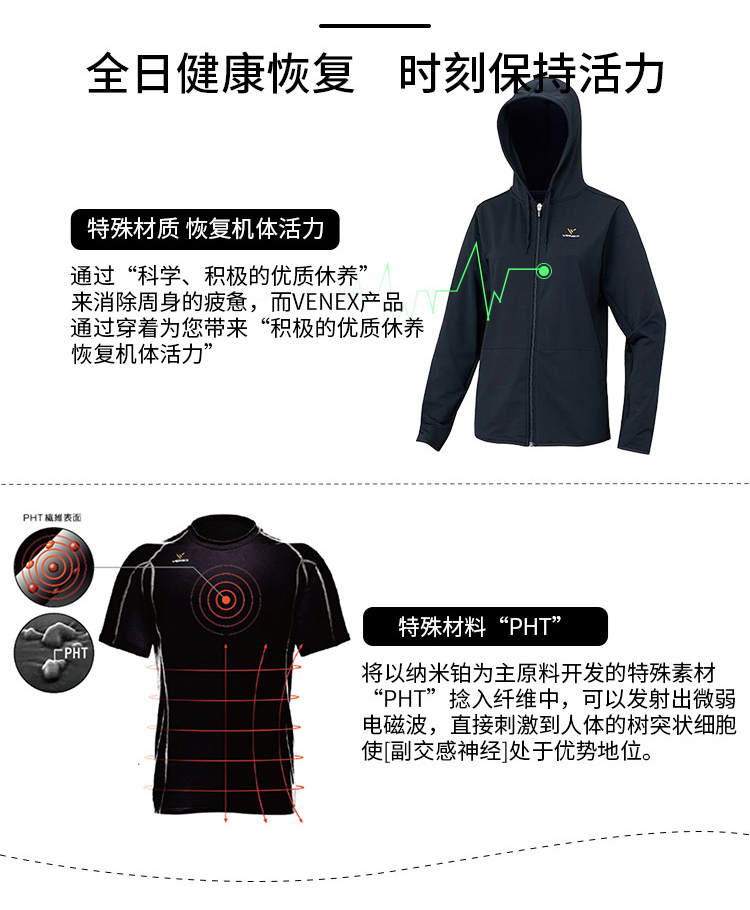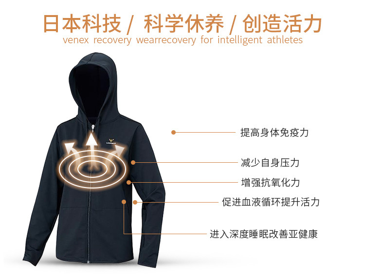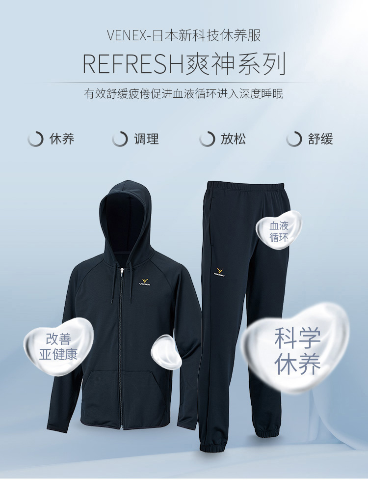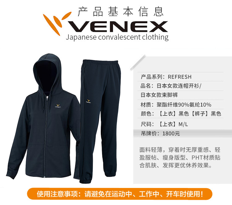 VENEX休养服休闲爽神系列女款连帽开衫 舒缓疲倦改善睡眠可外穿