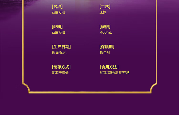【金龙鱼】KING'S紫韵东来亚麻籽油400ML-FN