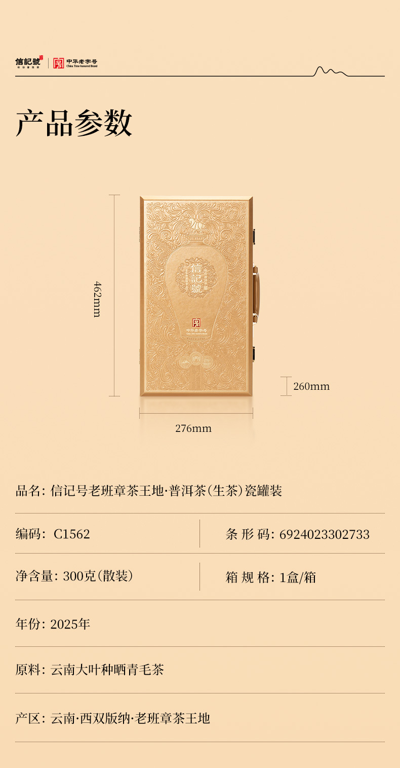 八马信记号 | 信记号老班章茶王地·普洱茶(生茶)瓷罐装2025 C1562