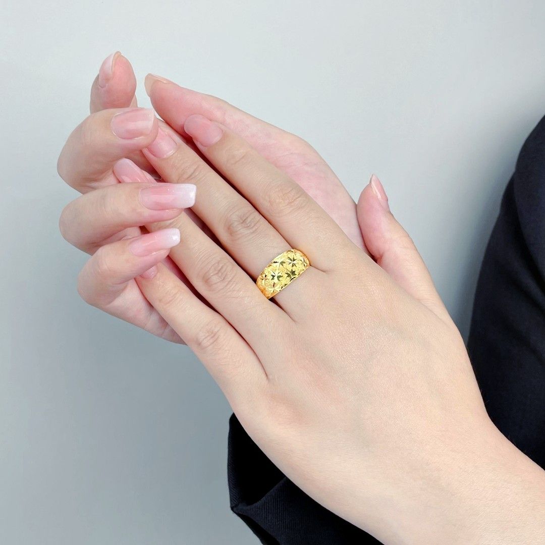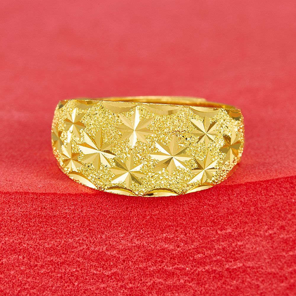 戒面镌刻满天星花纹,犹如繁星闪烁在指间,唯美闪耀,简洁百搭;贴心活口设计,可根据个人手指尺寸调节