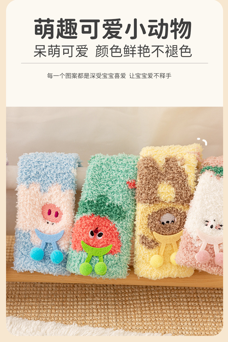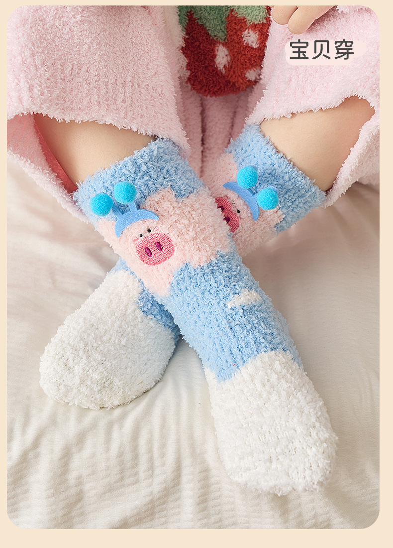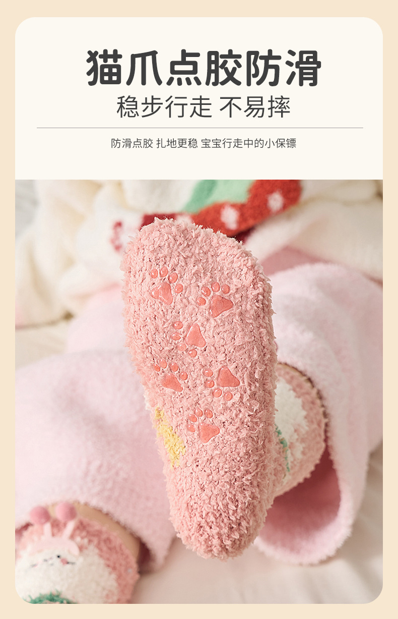 宝宝袜子秋冬新款加厚保暖柔软透气珊瑚绒中筒袜居家不掉毛女童袜