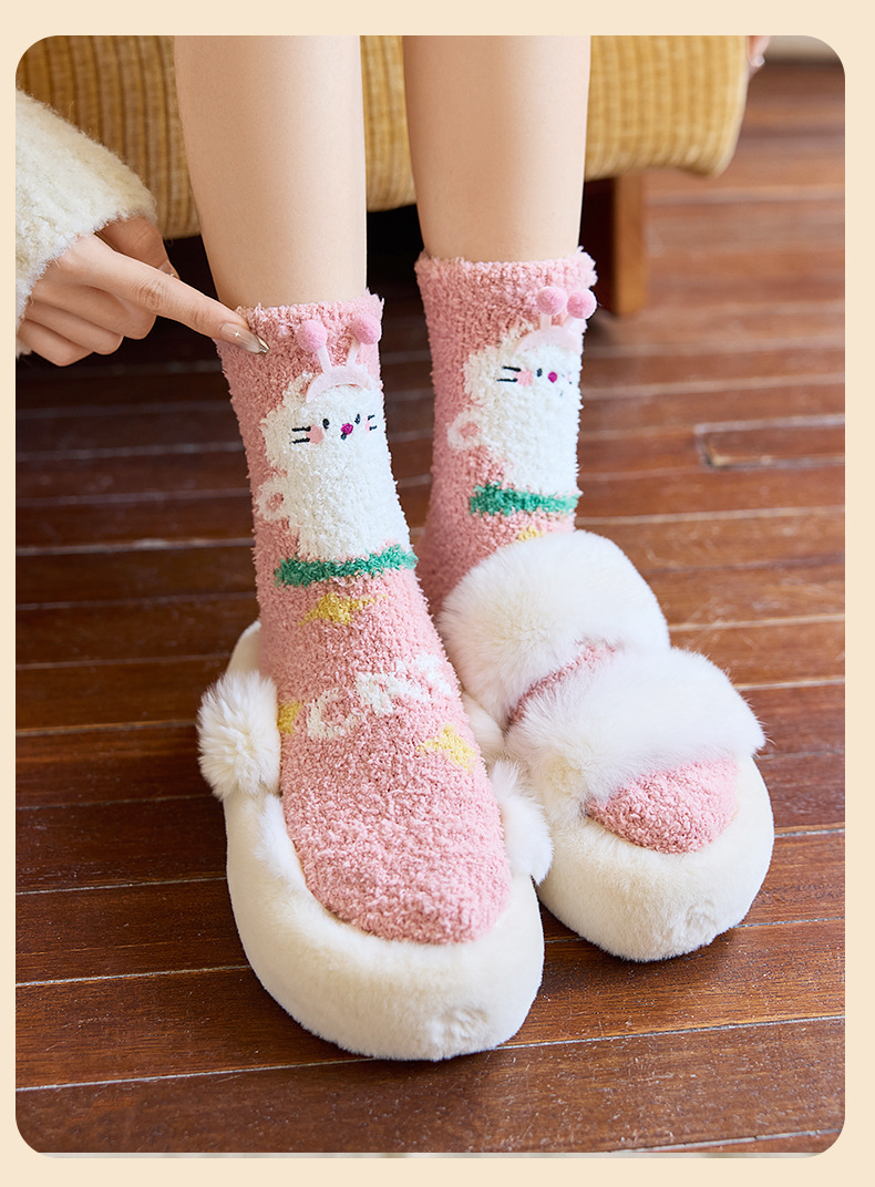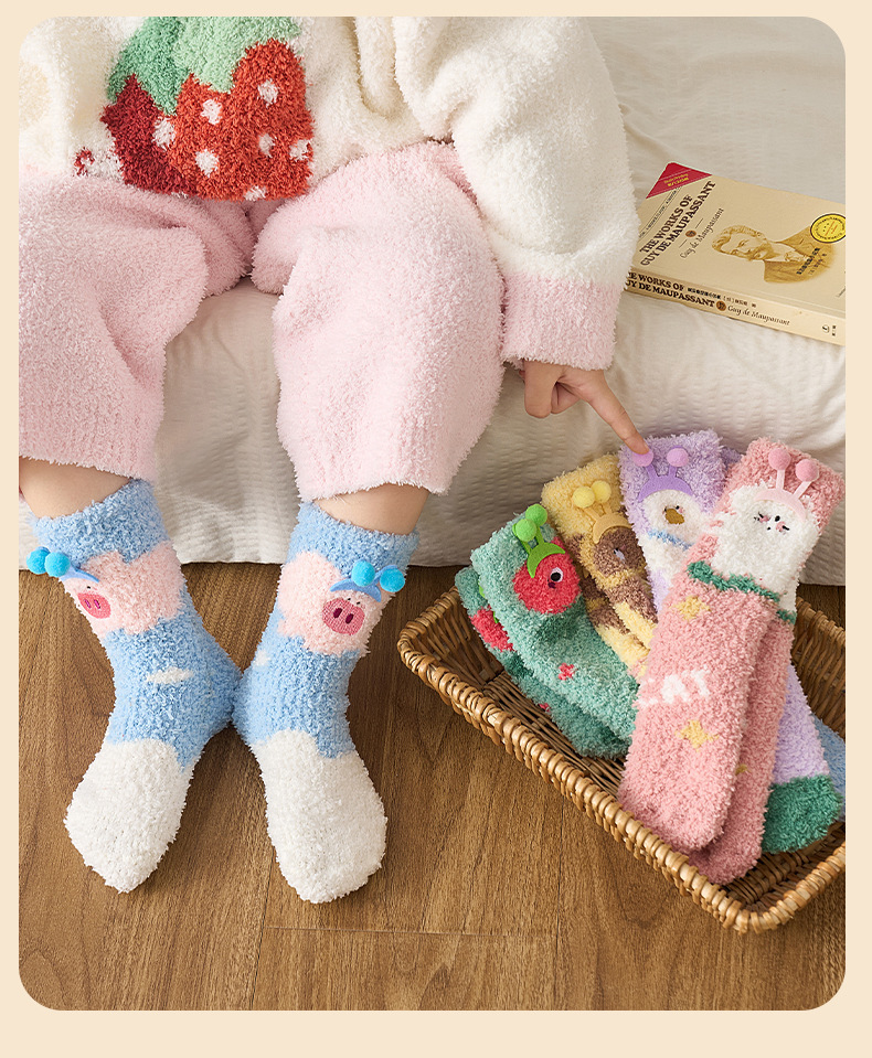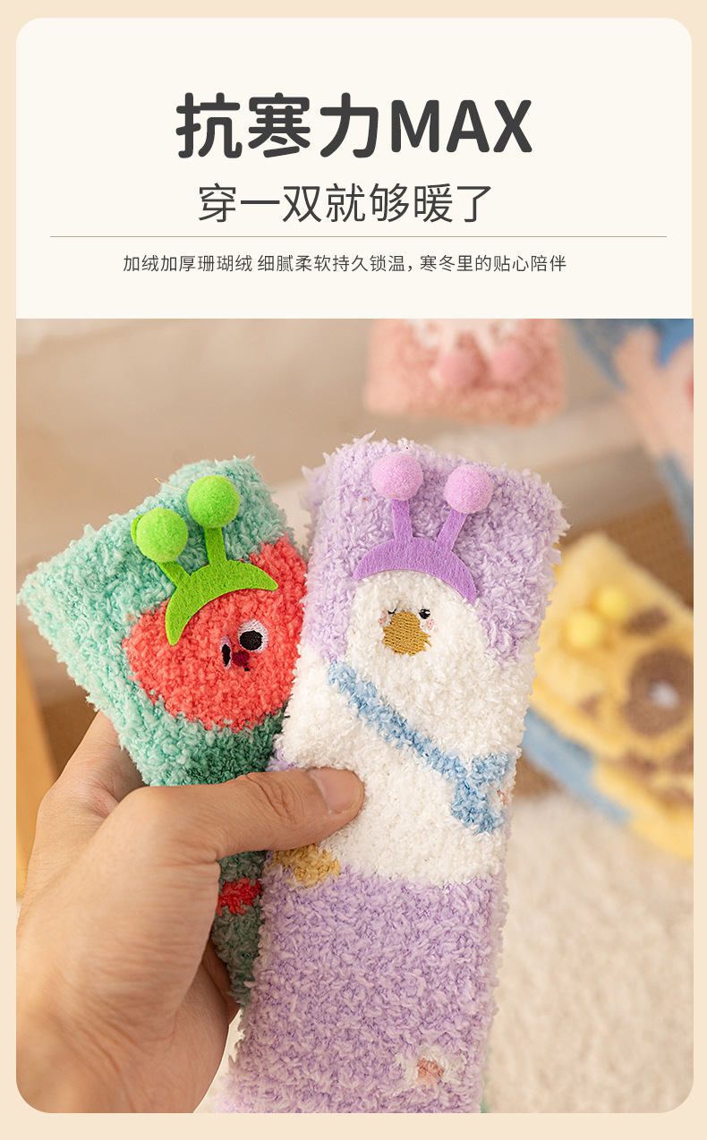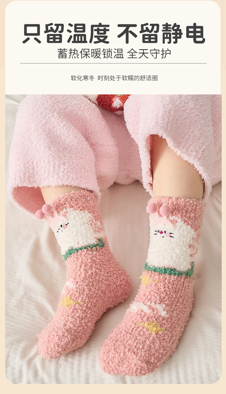 宝宝袜子秋冬新款加厚保暖柔软透气珊瑚绒中筒袜居家不掉毛女童袜