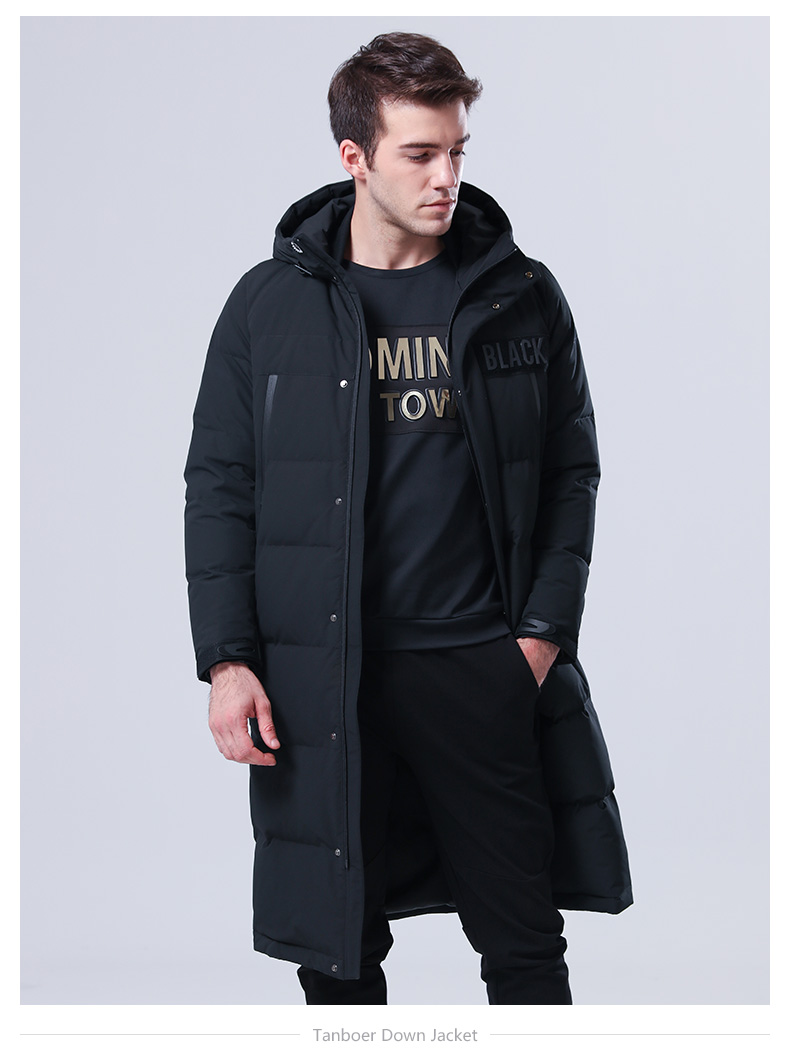 TA17791 坦博尔冬季新款羽绒服男士休闲长款时尚字母连帽外套