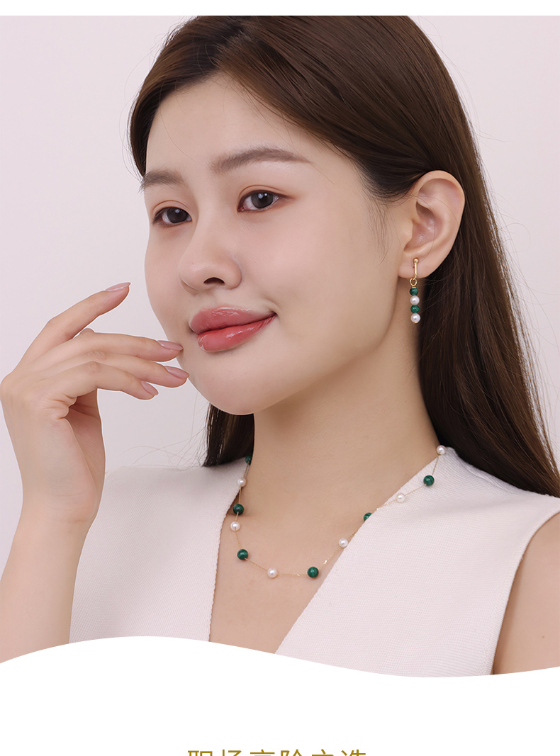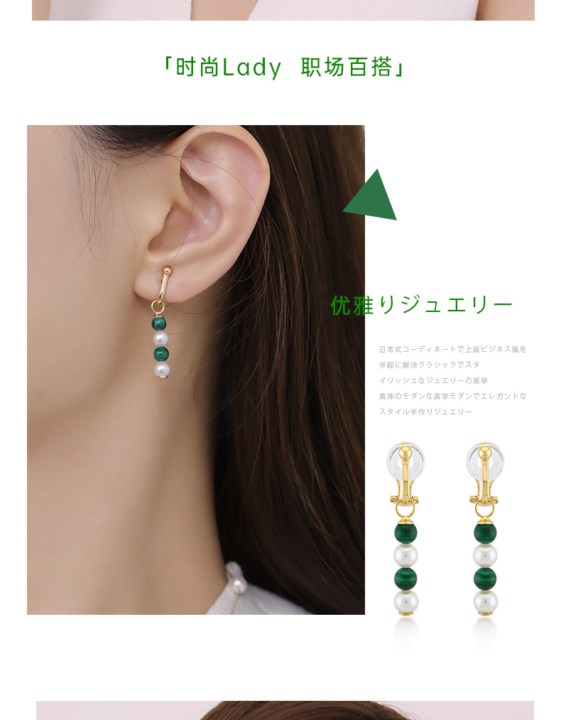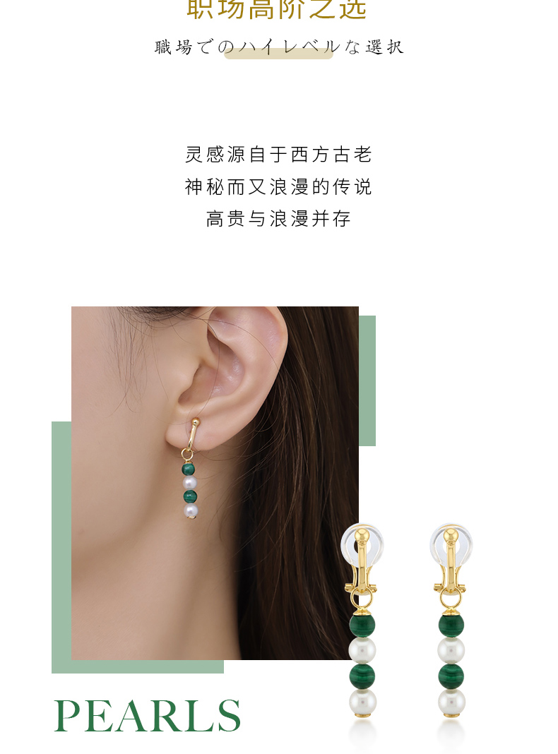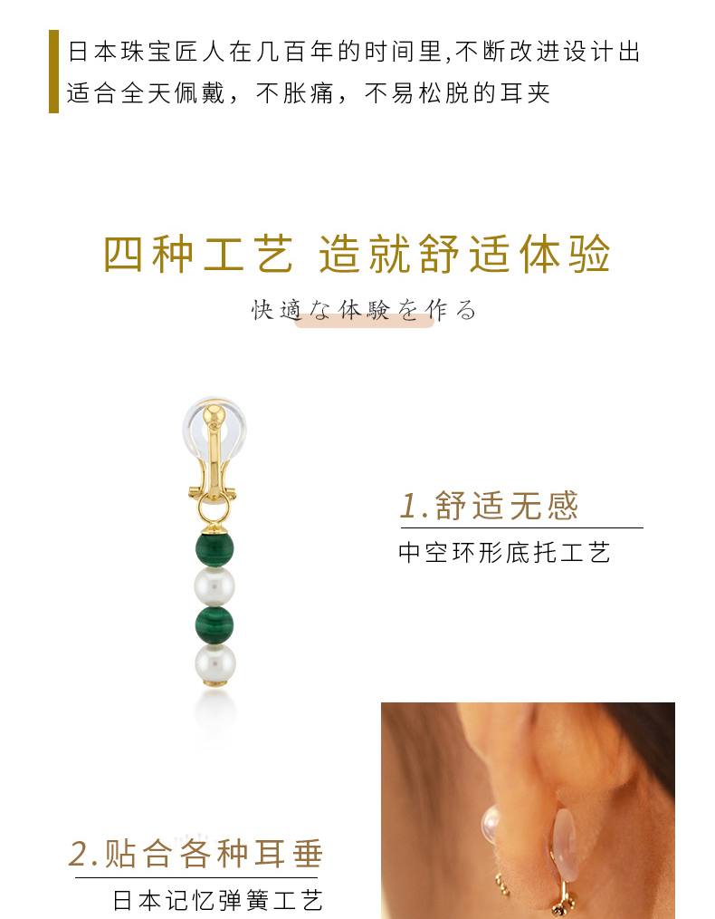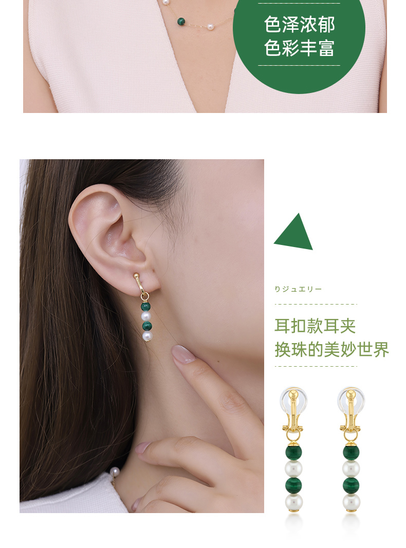 【天猫同款】耳扣款-18k金孔雀石akoya珍珠耳夹5-5.5mm