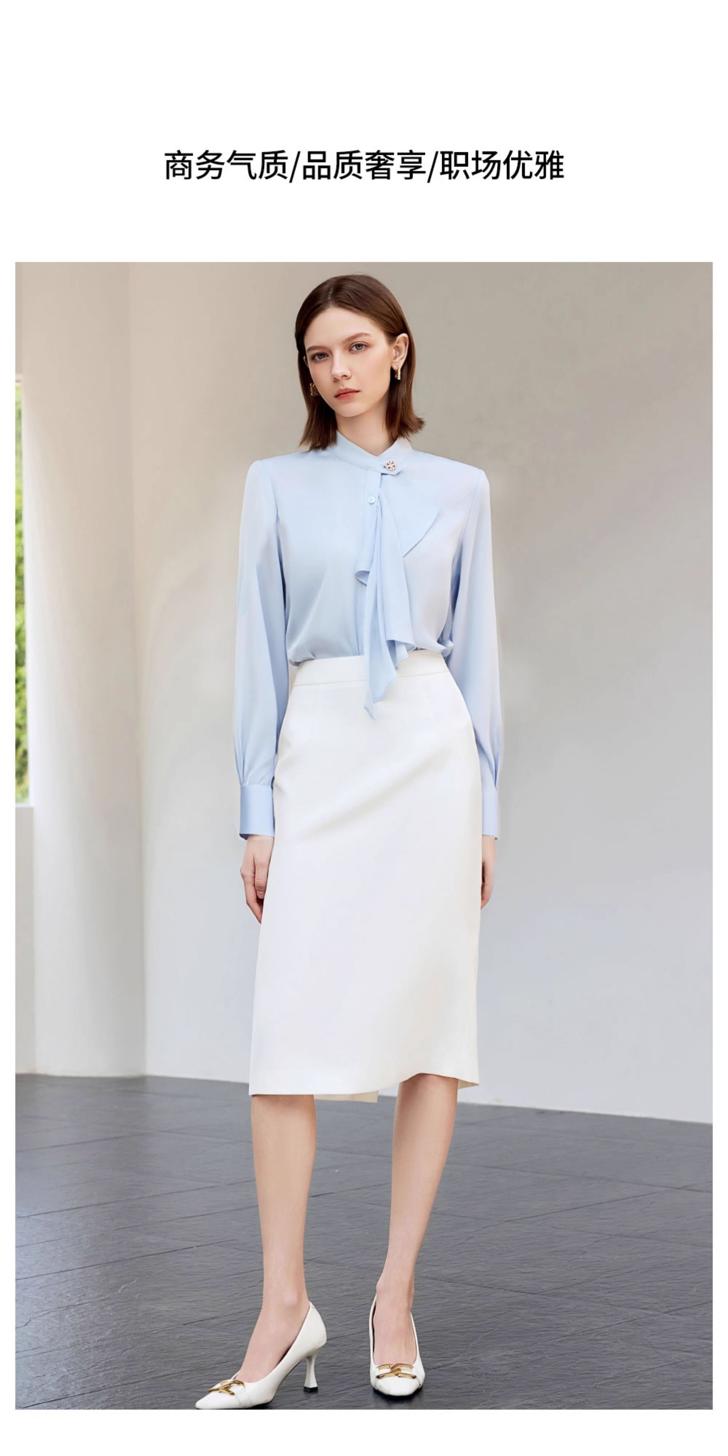 IWY/蓝色衬衫女新款气质女神范职业装长袖衬衣包臀裙两件套B566+S1854