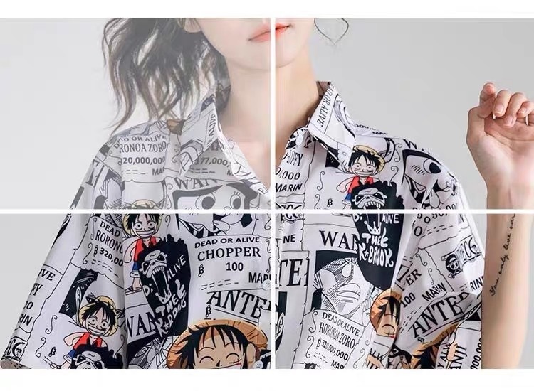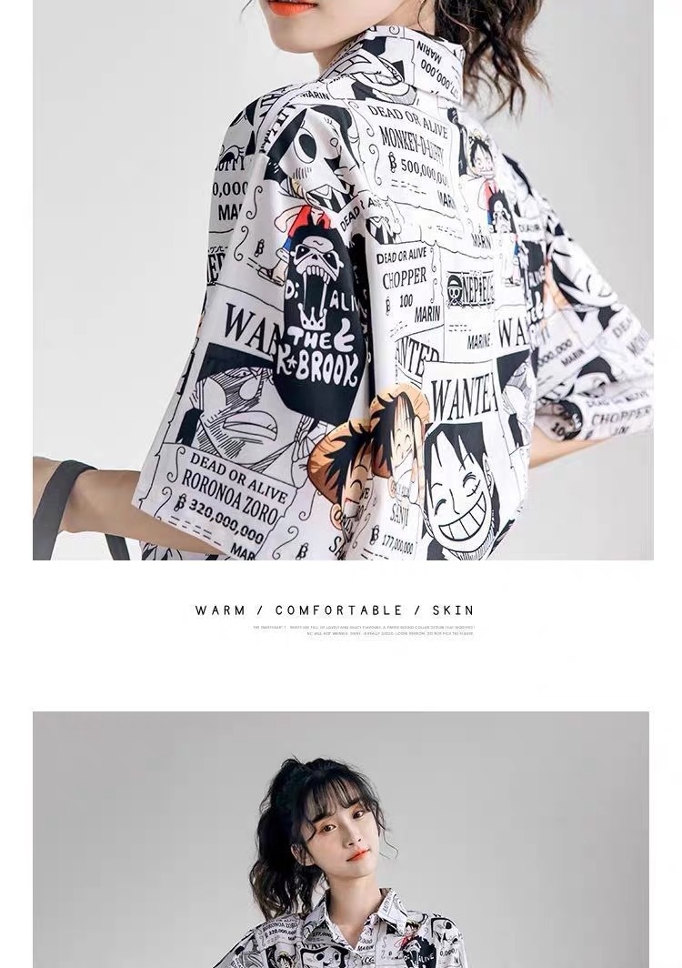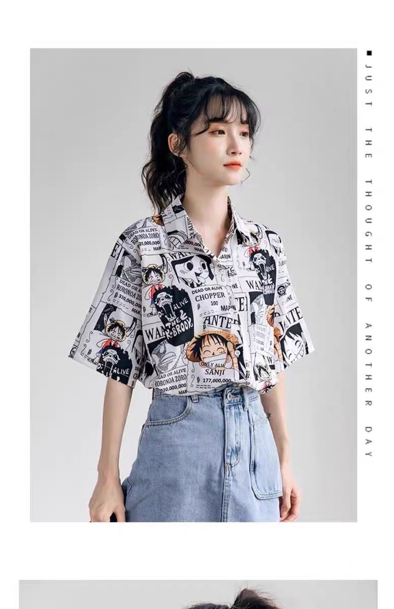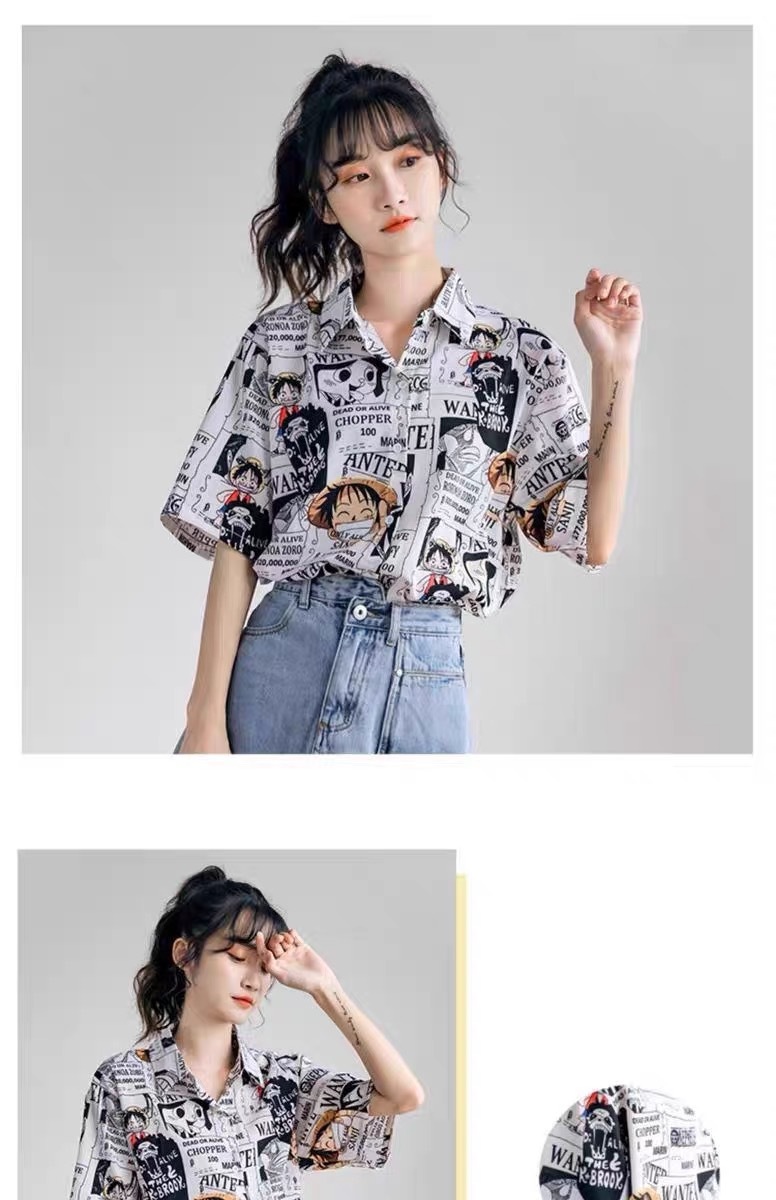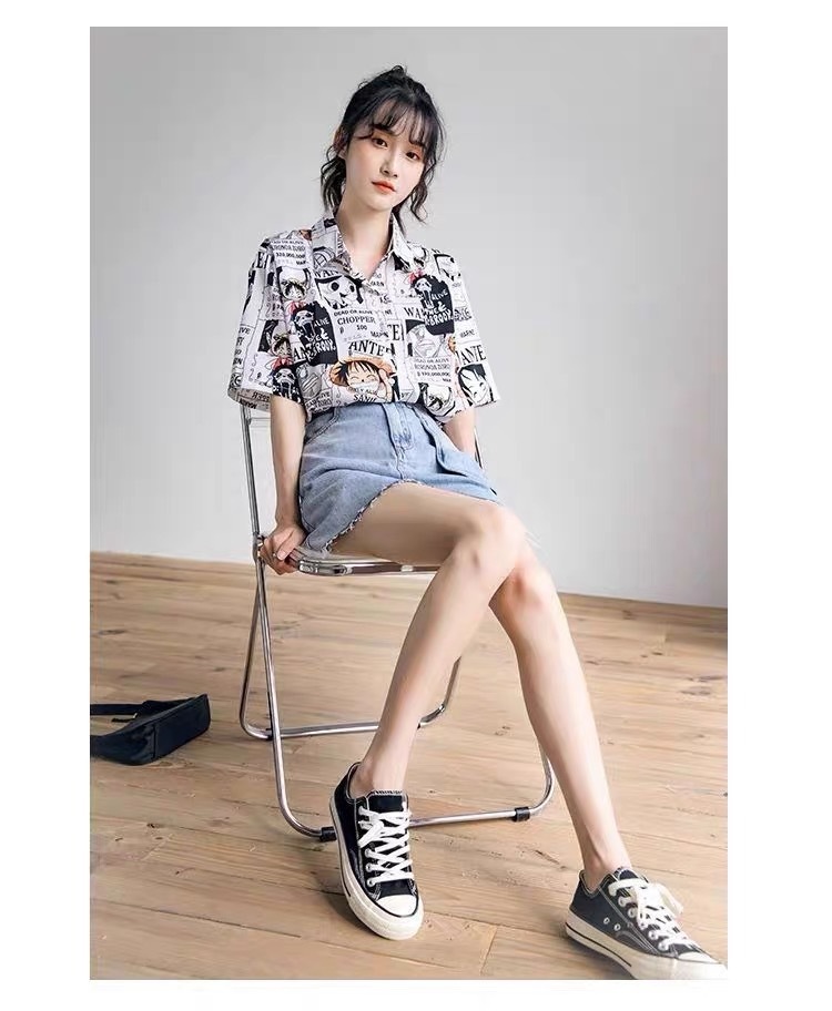 新款夏季薄款韩版宽松卡通印花上衣潮衬衫女设计感短袖清凉短袖出游服饰女装