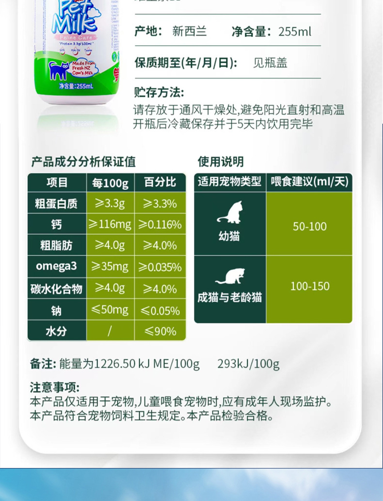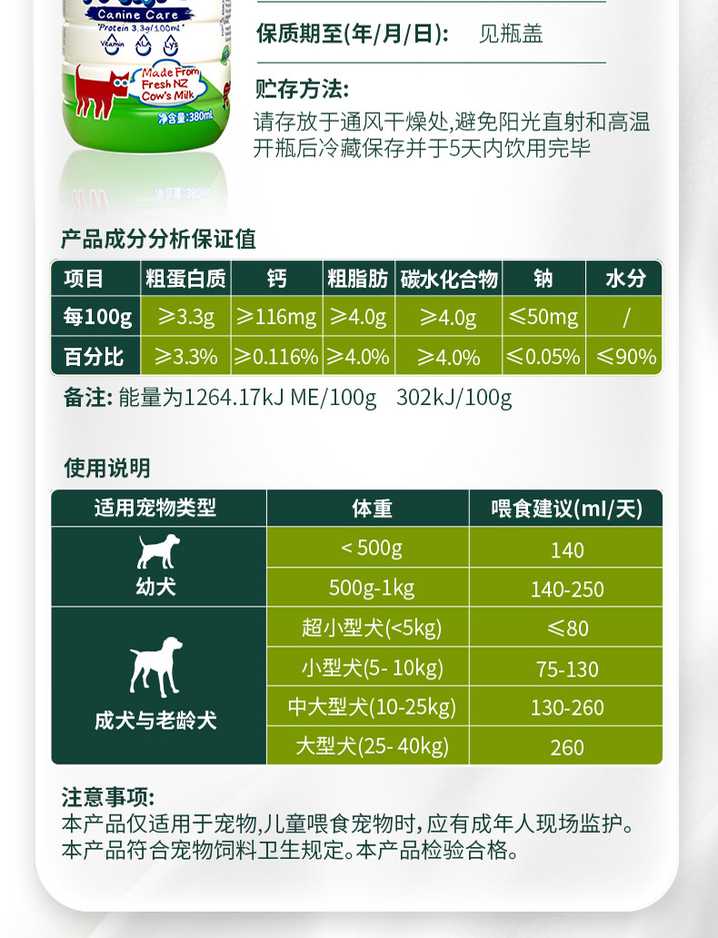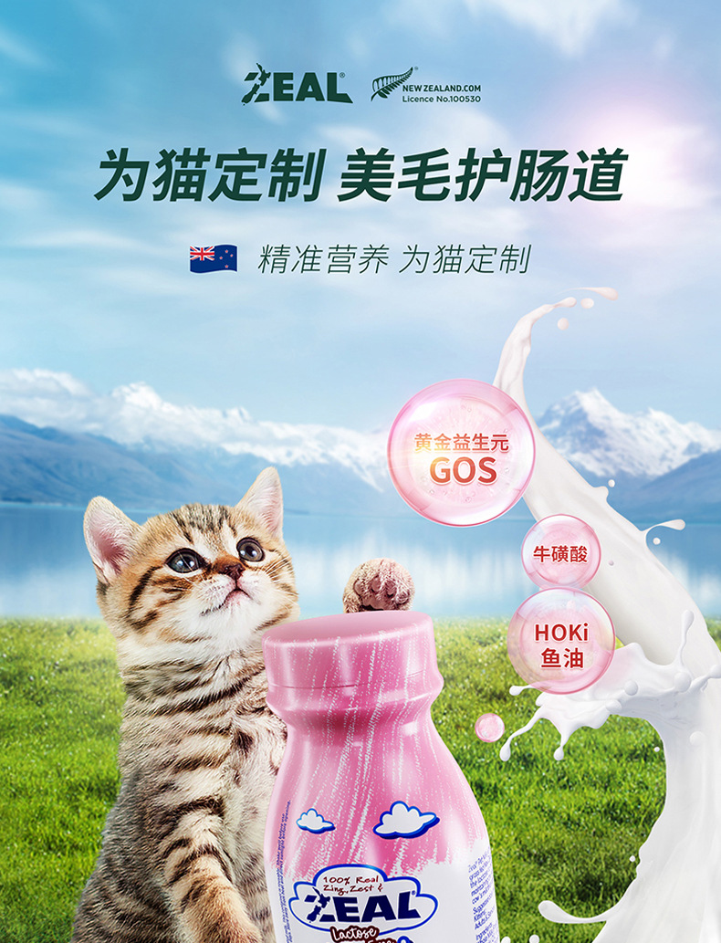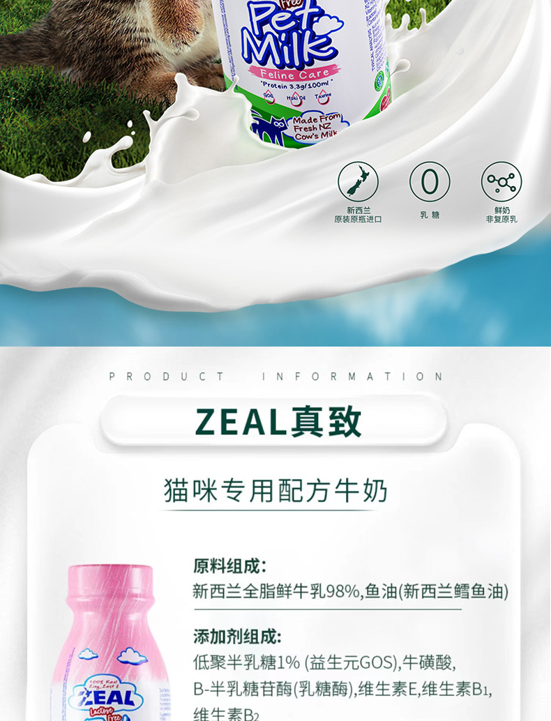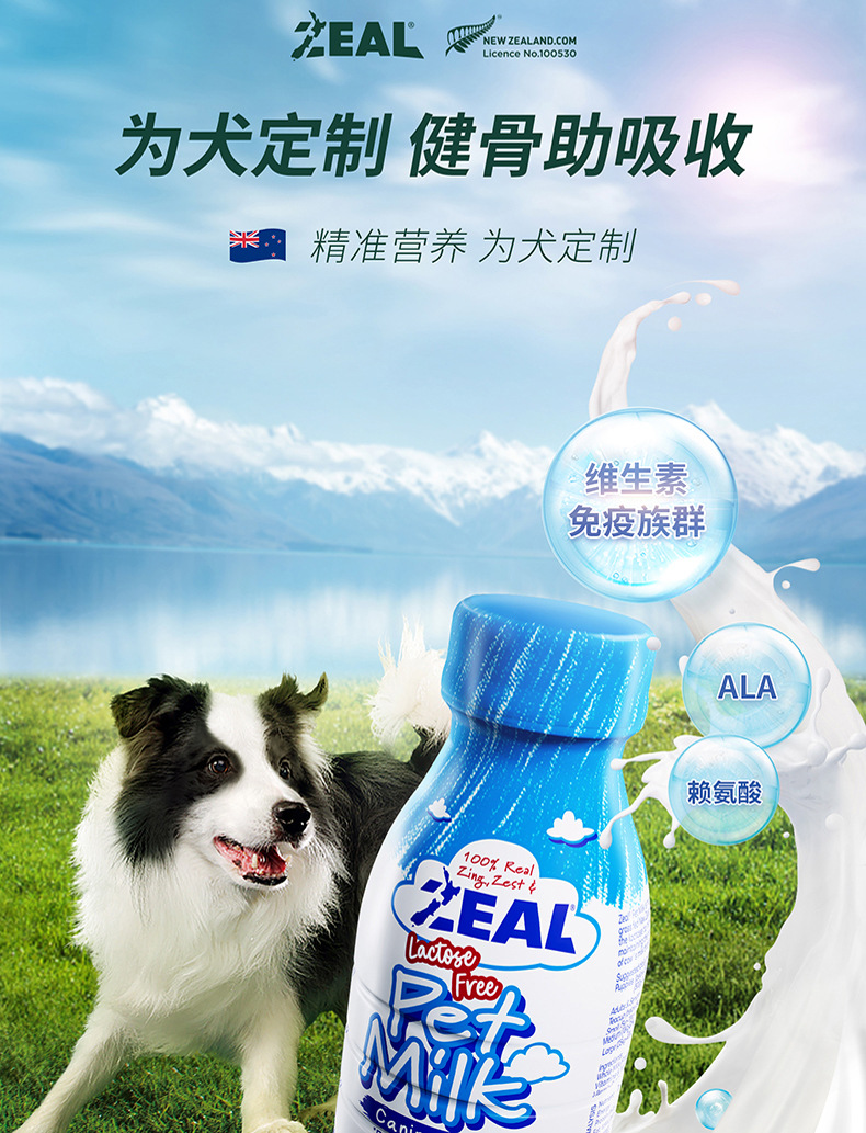 新西兰ZEAL宠物牛奶犬猫宠物 零食牛奶380ml猫狗零食真致牛奶