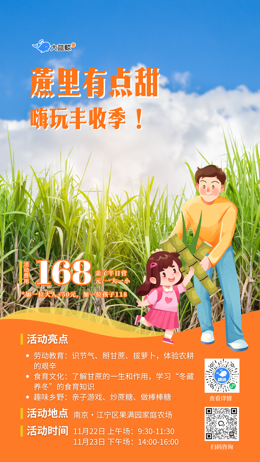 大蓝鲸爱研学|【亲子半日营】24节气课堂、亲子掰甘蔗、手作甘蔗棒棒糖、拔萝卜腌萝卜趣冬藏……好忙好忙的田间小孩呀!