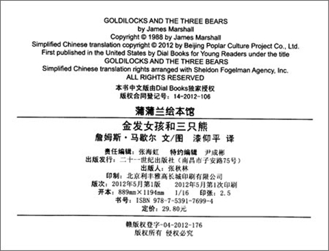 蒲蒲兰 金发女孩和三只熊 詹姆斯·马歇尔 3-4-5-6岁 正版